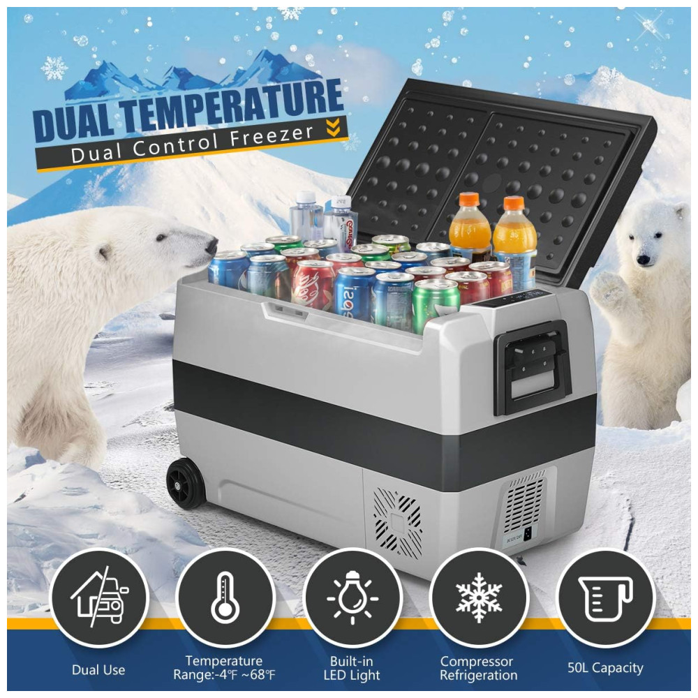 COSTWAY Mini Geladeira Automotiva Portátil DC 12 24V AC 110 220V 50L controle duplo de temperatura c painel LCD