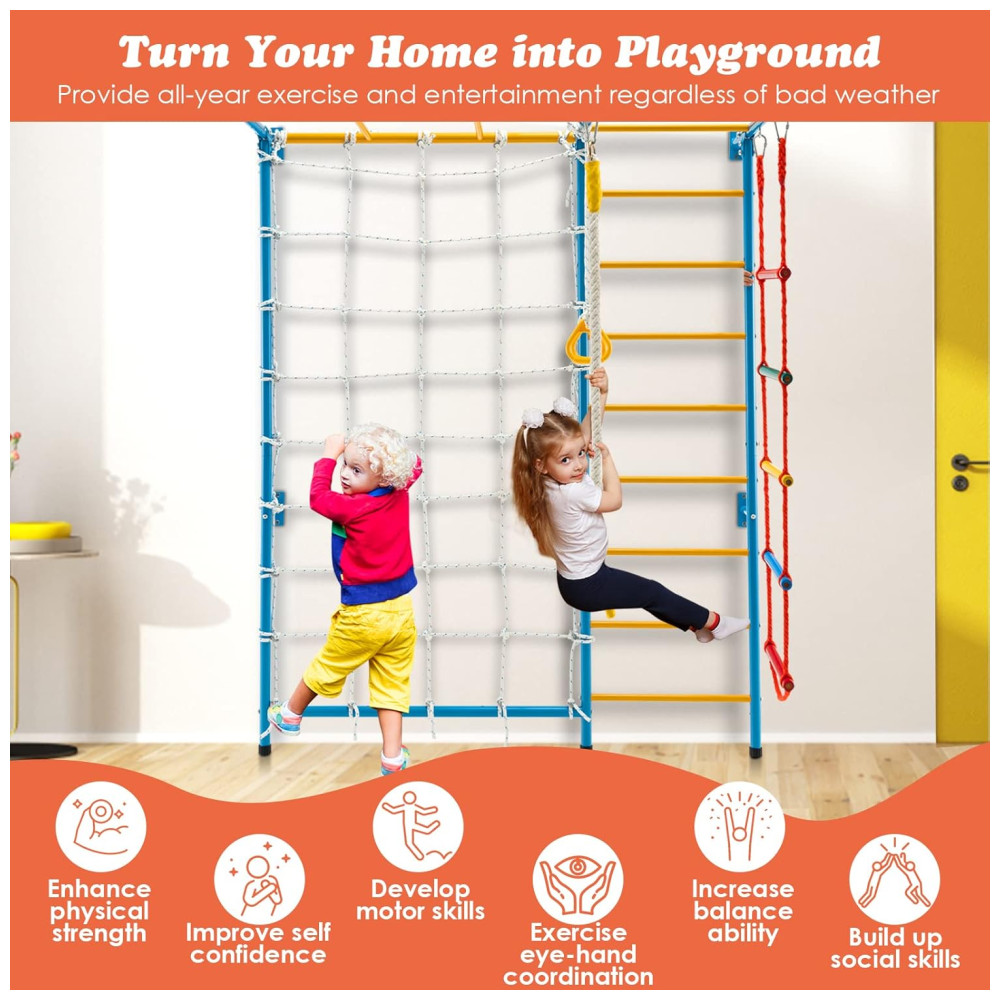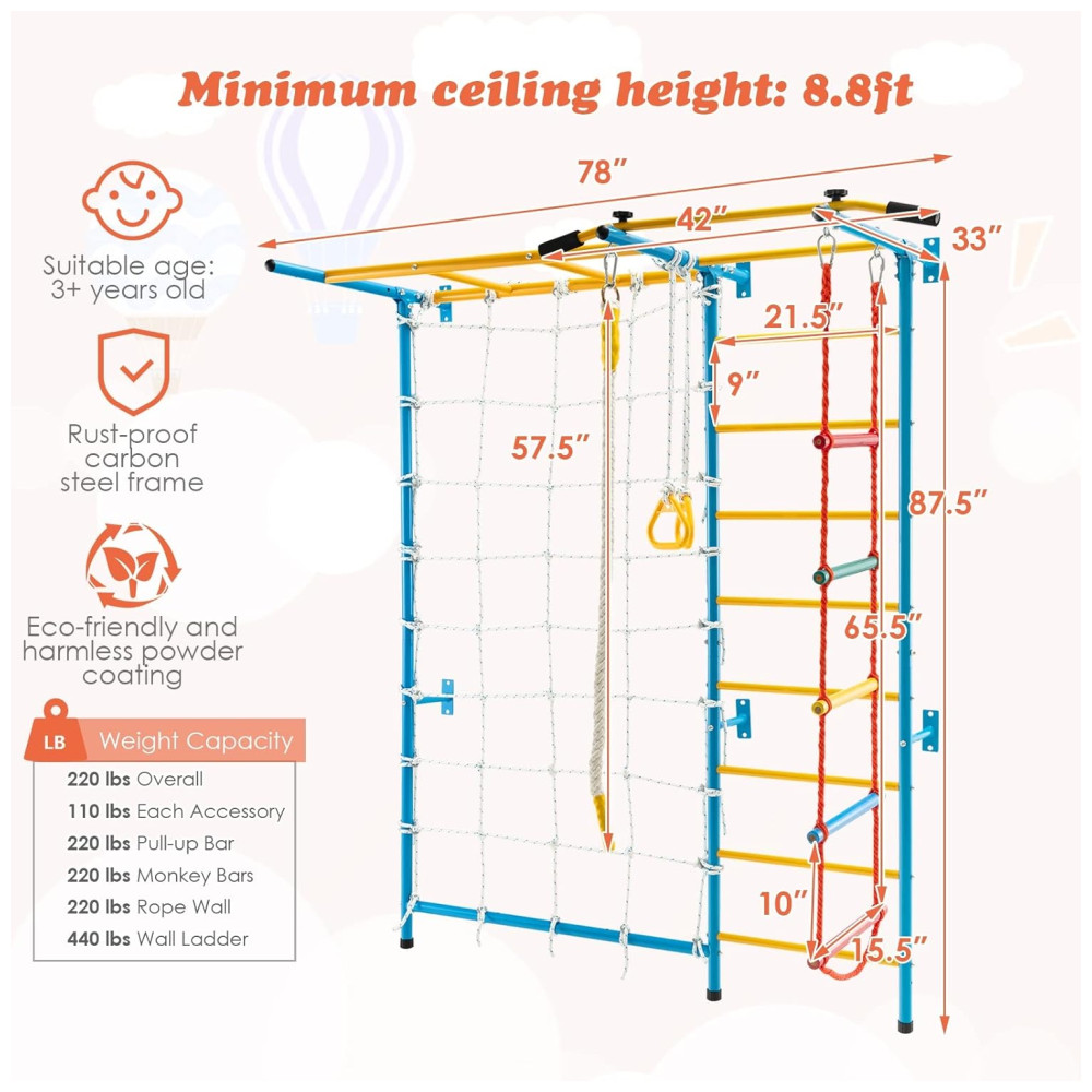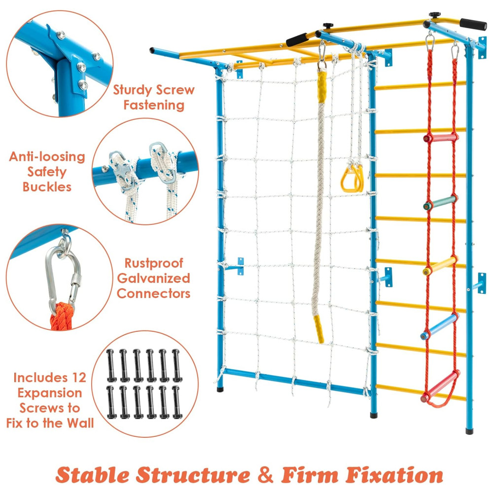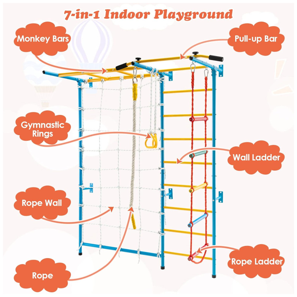 Costzon 7 em 1 Brinquedos de Escalada para Crianças Ginásio Interno para Exercício Conjunto de Parede com Escada de Parede Barra de Pullup Corda