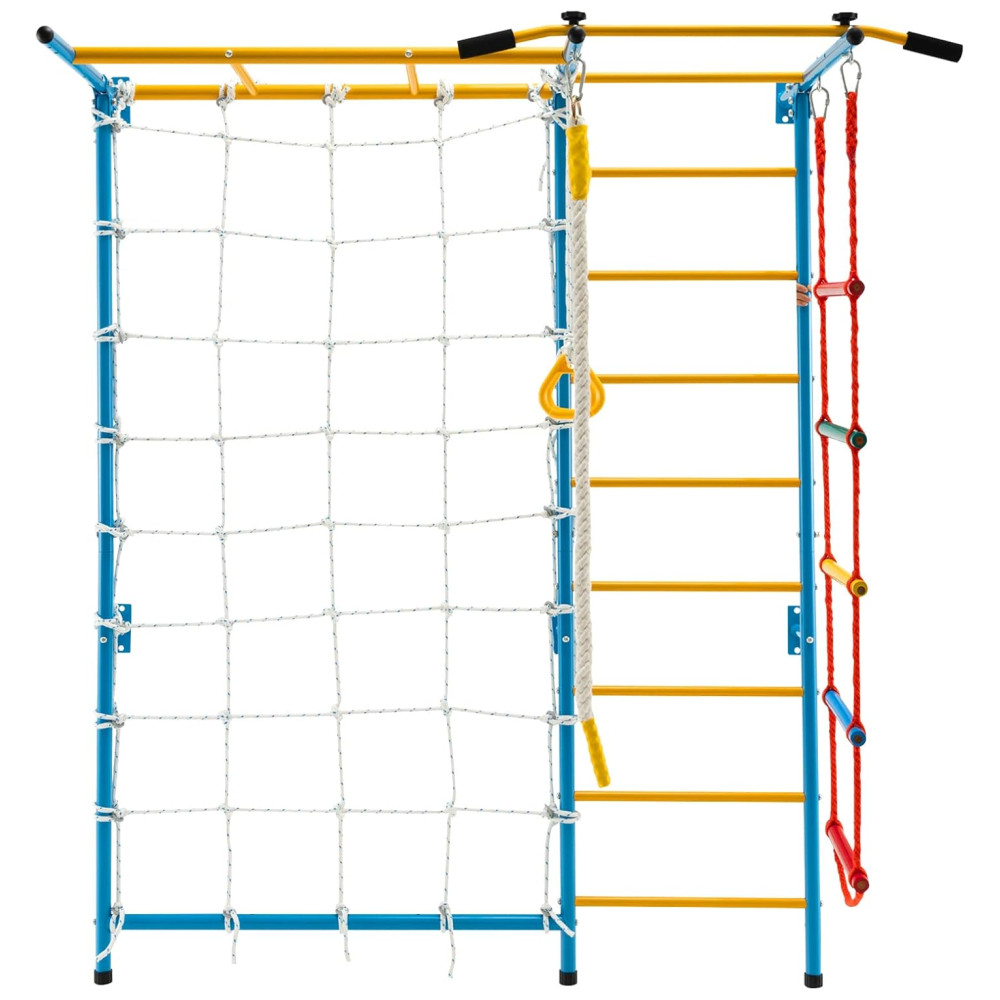 Brinque com mais segurança com materiais de aço carbono! A estrutura e os acessórios são feitos de material de aço carbono resistente, garantindo alta estabilidade e longa durabilidade. As extremidades da barra de pullup são cobertas com espuma EVA para evitar escorregões e aumentar o atrito. Os tubos inferiores possuem protetores de PVC para proteger o piso de arranhões. Este conjunto de parede 7 em 1 para diversão em família é fornecido com escada de parede, corda, barras de macaco, barra de pullup, escada de corda, corda e argolas de ginástica. Ao escalar, balançar e se balançar, melhora a capacidade de movimentação rápida a pé e a flexibilidade física, equilíbrio e coordenação. Melhora o ritmo do movimento corporal. Capacidade de peso da barra de pullup e escada de parede 100 kg. Capacidade de peso dos outros equipamentos 50 kg. Por favor, instale dispositivo de proteção contra quedas durante o uso.