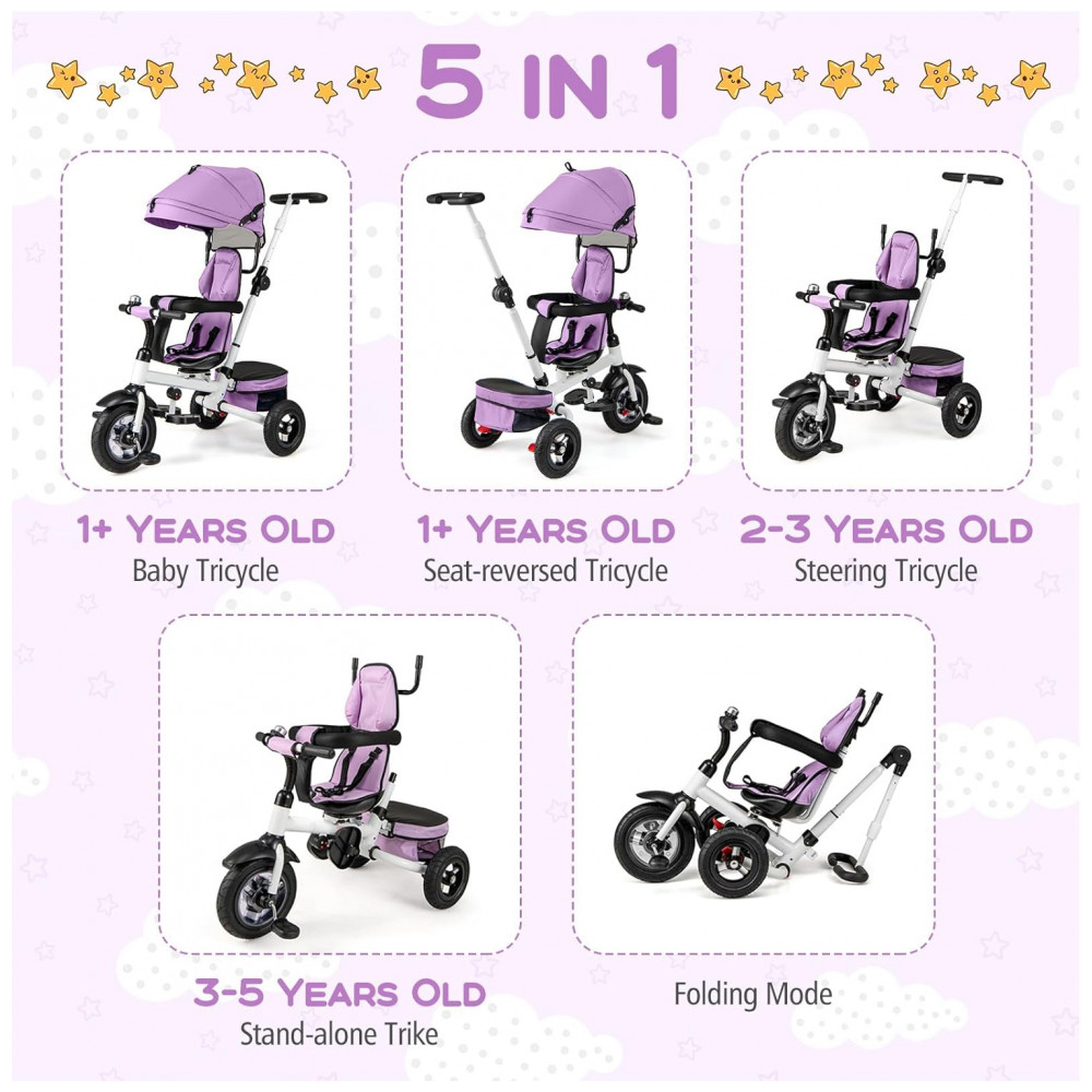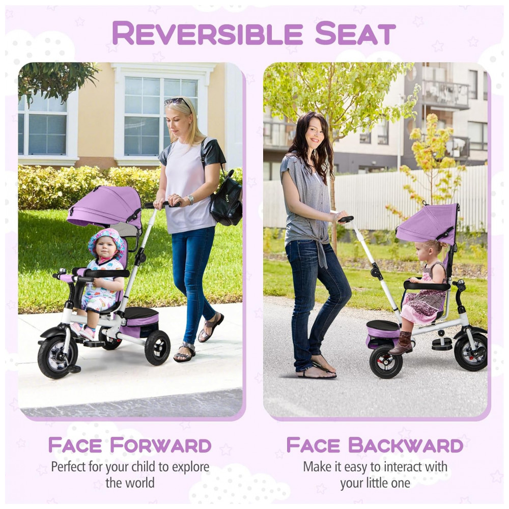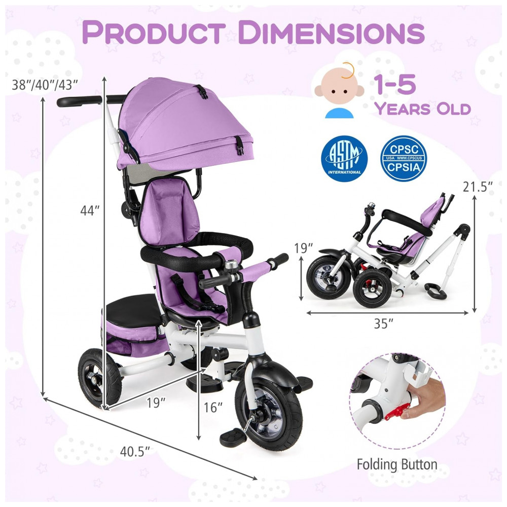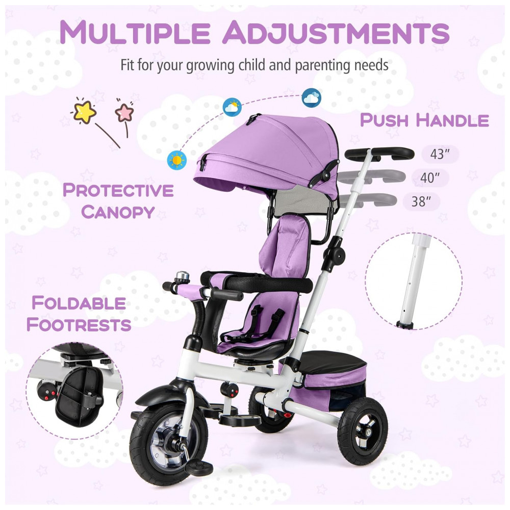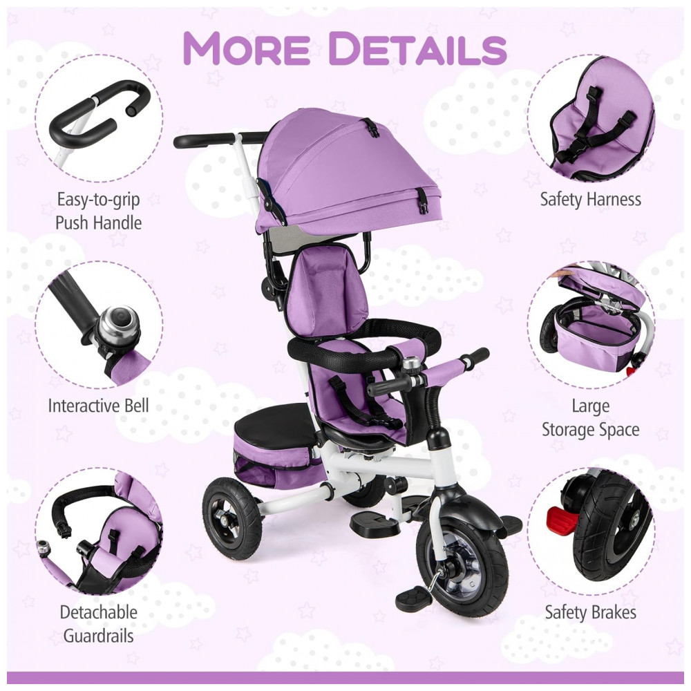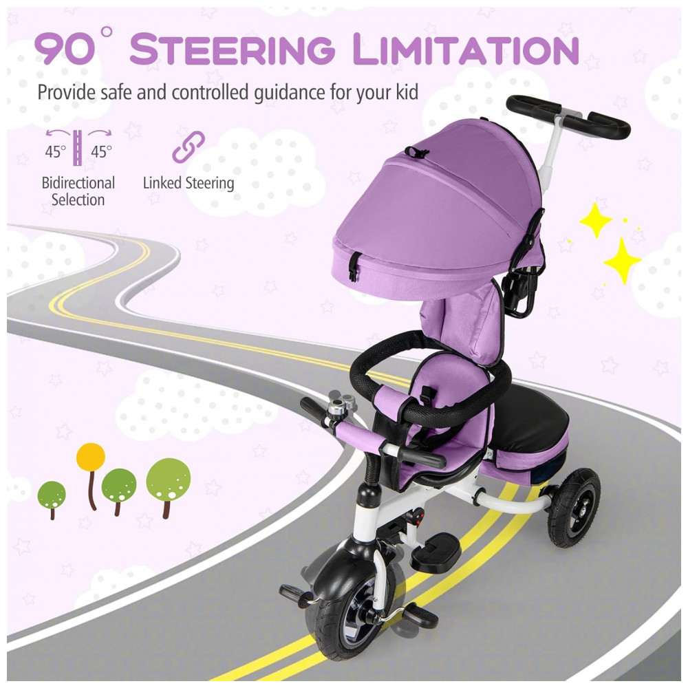 Costzon 8808 Triciclo Infantil para Passeio com Assento Ajustável 6 Estágios Idade Recomendada 2 a 5 Anos Roxo