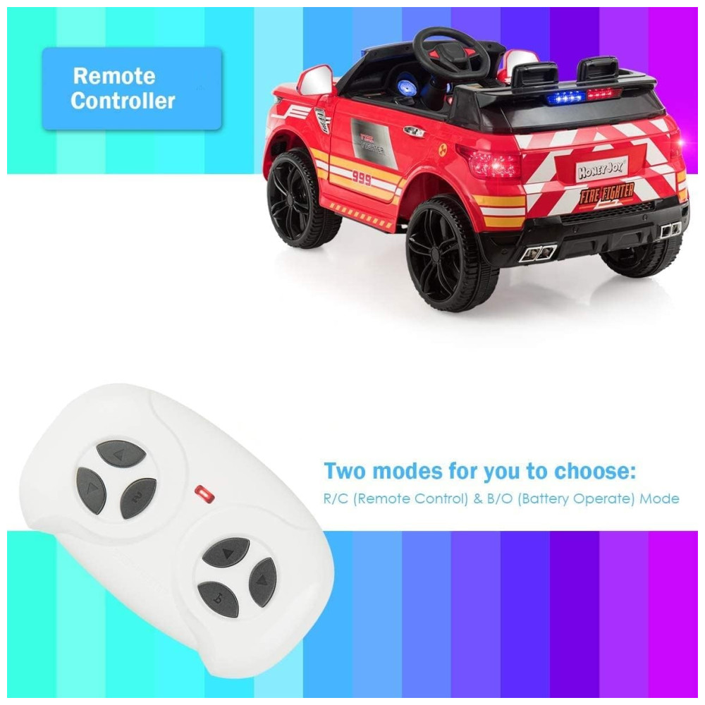Dois modos de controle 1. Modo de controle remoto dos pais os pais podem controlar sem esforço este carrinho de brinquedo com o controle remoto fornecido, que promove a interação entre pais e filhos. 2. Modo de operação a bateria alimentado por bateria recarregável, este carro de polícia elétrico permite que as crianças o controlem livremente com o volante e o pedal dentro.