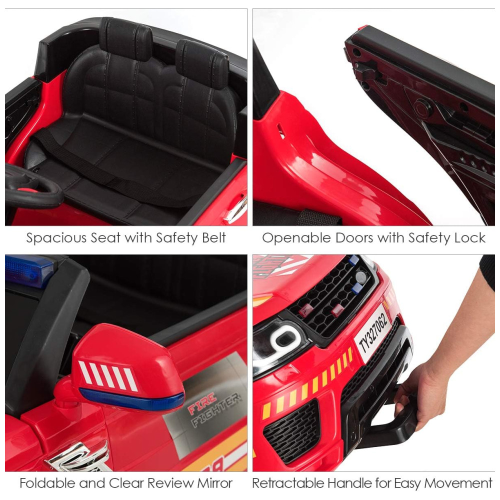 Costzon Carro Carrinho Policial Elétrico 12V Recarregável com 2 Lugares Luzes e Sons Vermelho 3