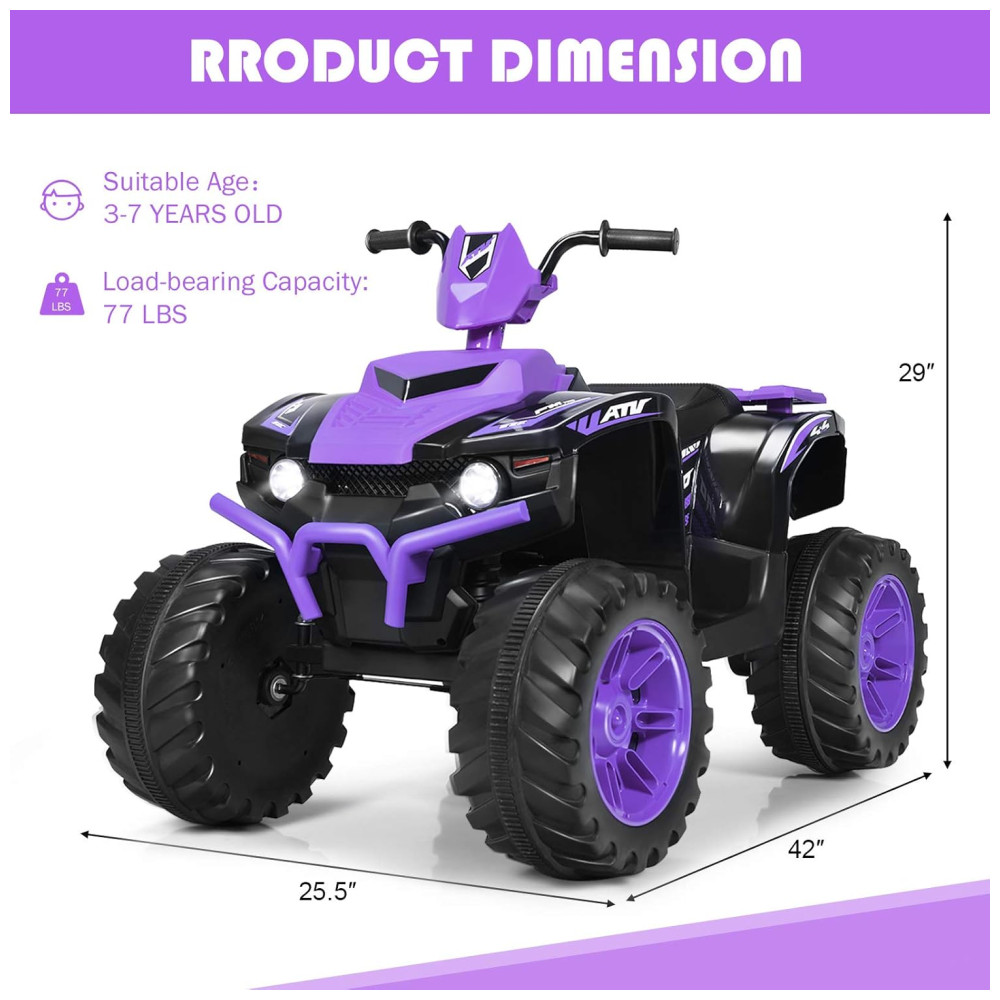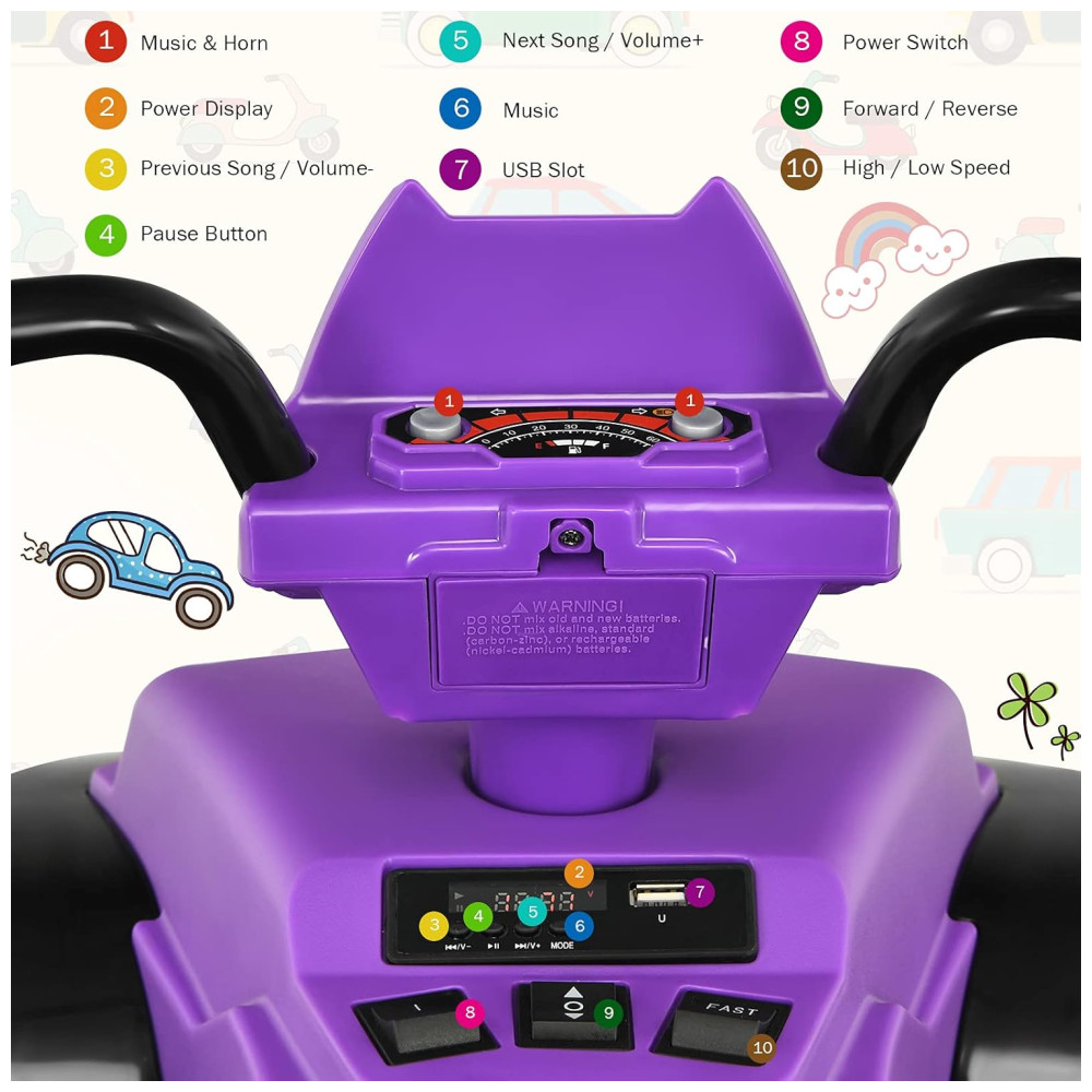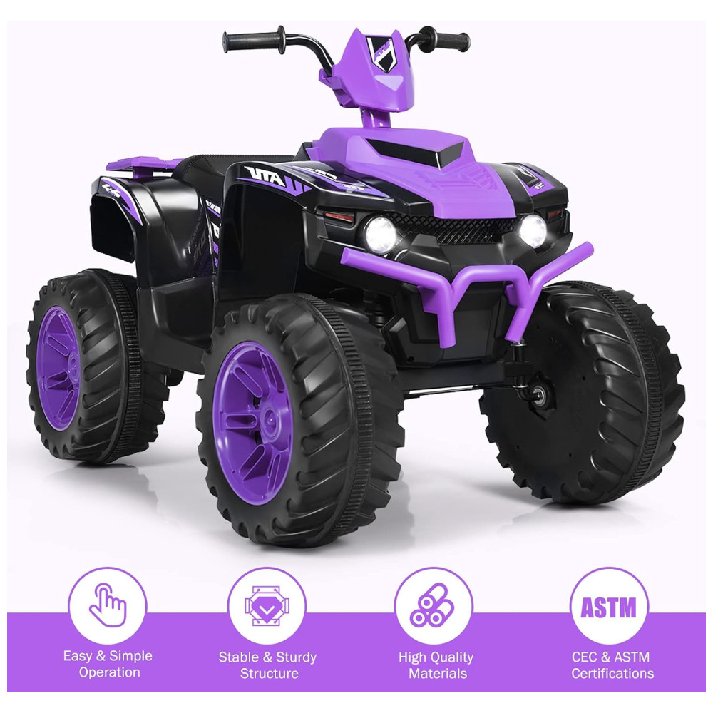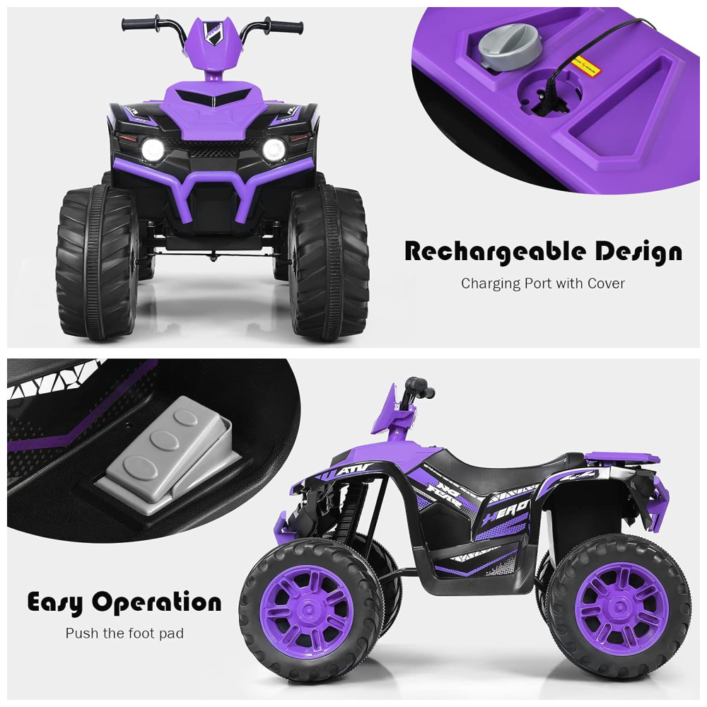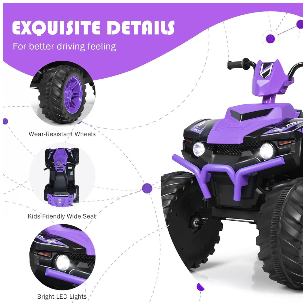 Costzon Kids Quadriciclo Elétrico 1 Assento 12V com Luzes de LED Roxo