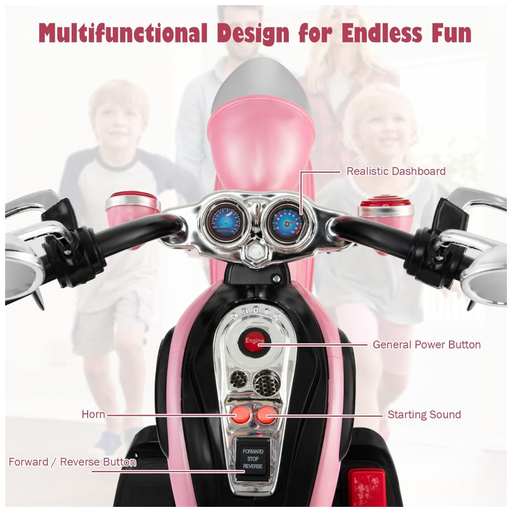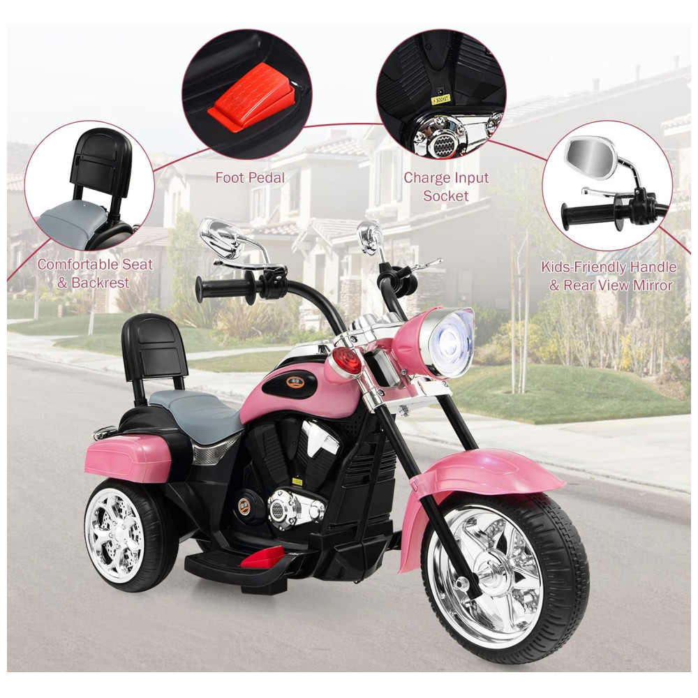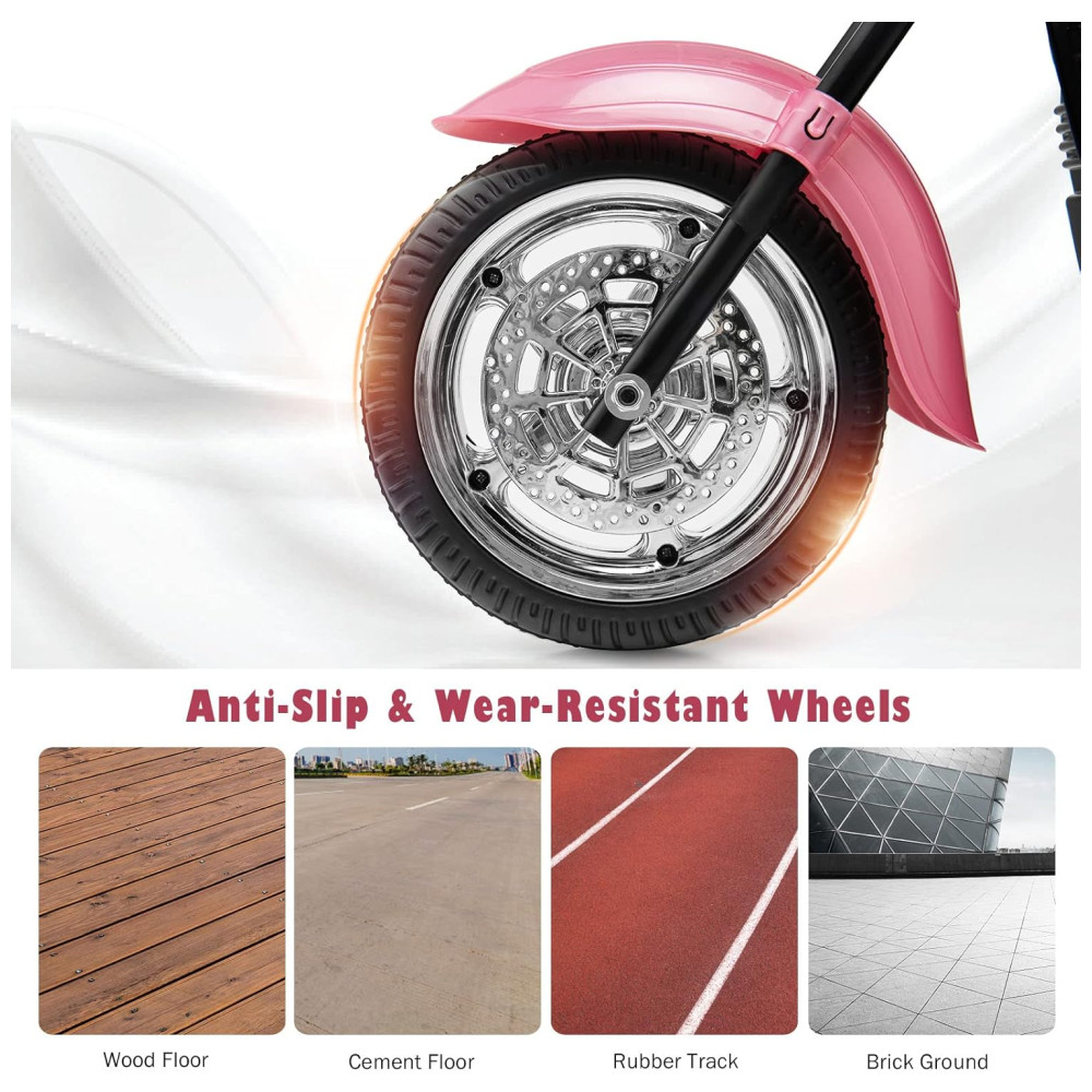 Design atraente estilo Chopper a motocicleta estilo chopper atrairá as crianças à primeira vista, cuja aparência realmente legal é superior a outras motocicletas comuns. Além disso, seu design de 3 rodas com baixa gravidade proporciona uma experiência de condução estável para evitar quedas. Além disso, o assento adequado para crianças com encosto deve levar o conforto para o próximo nível.