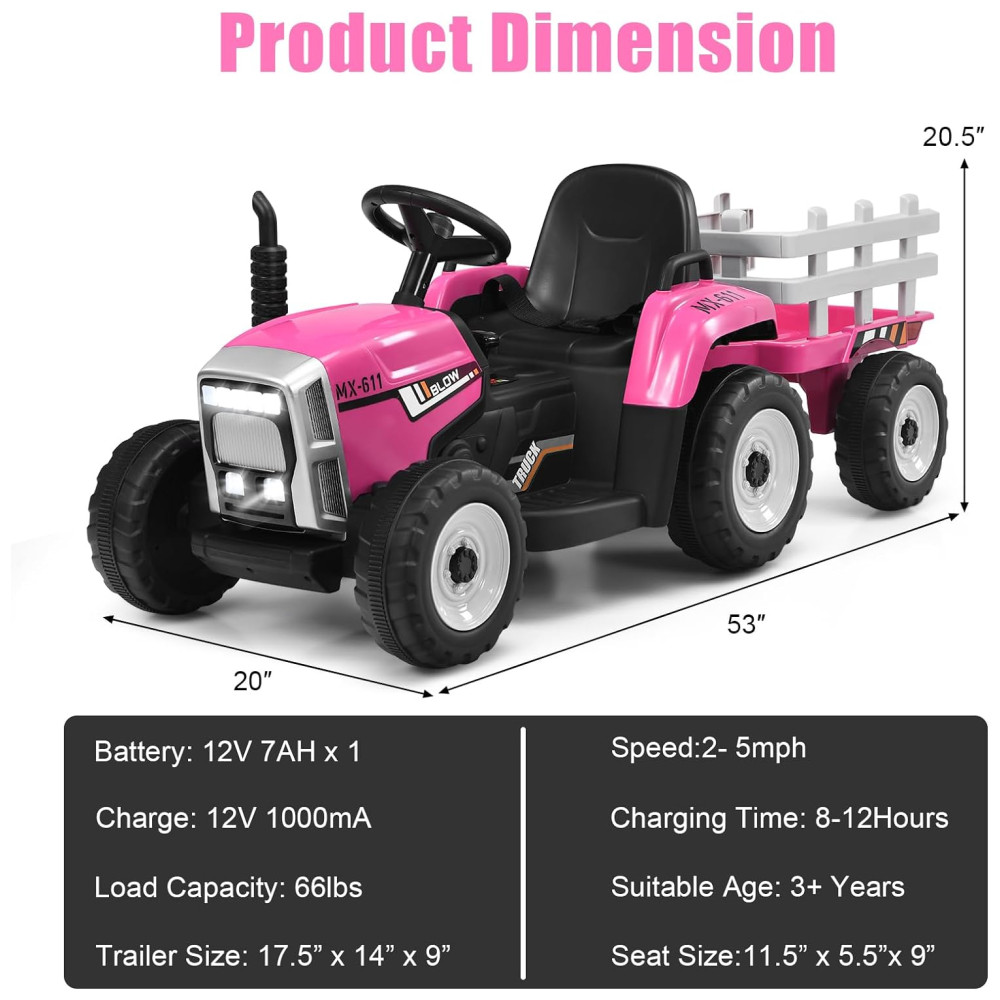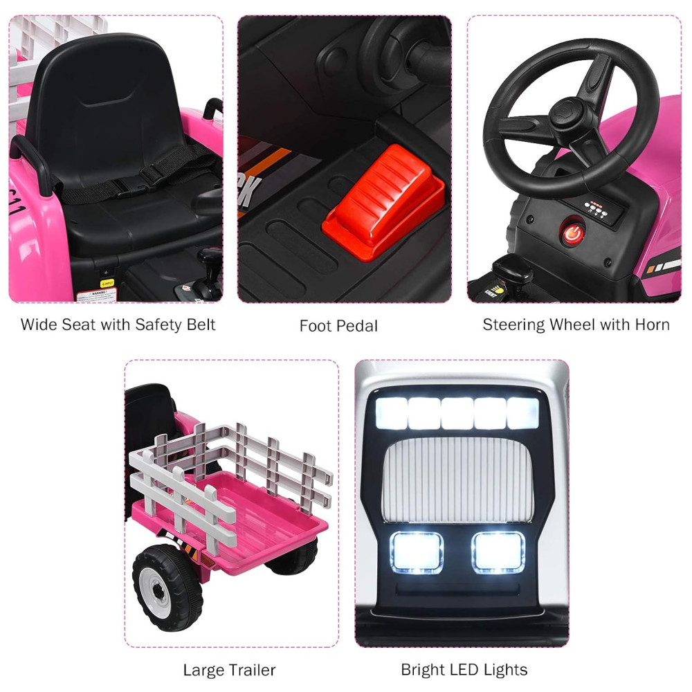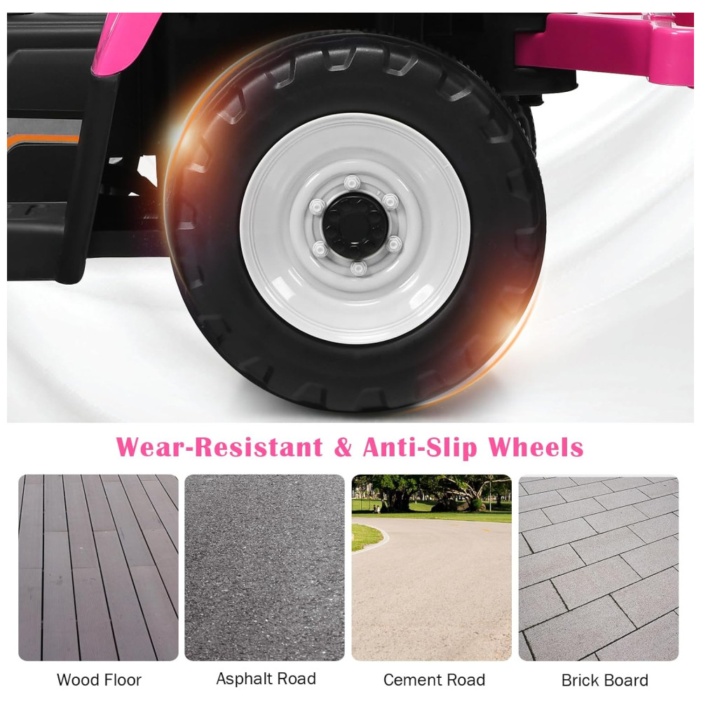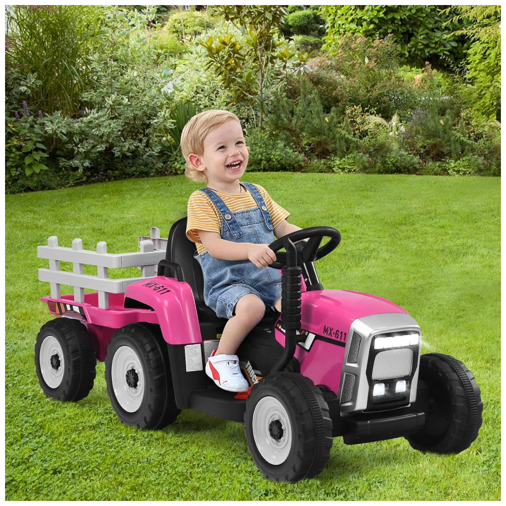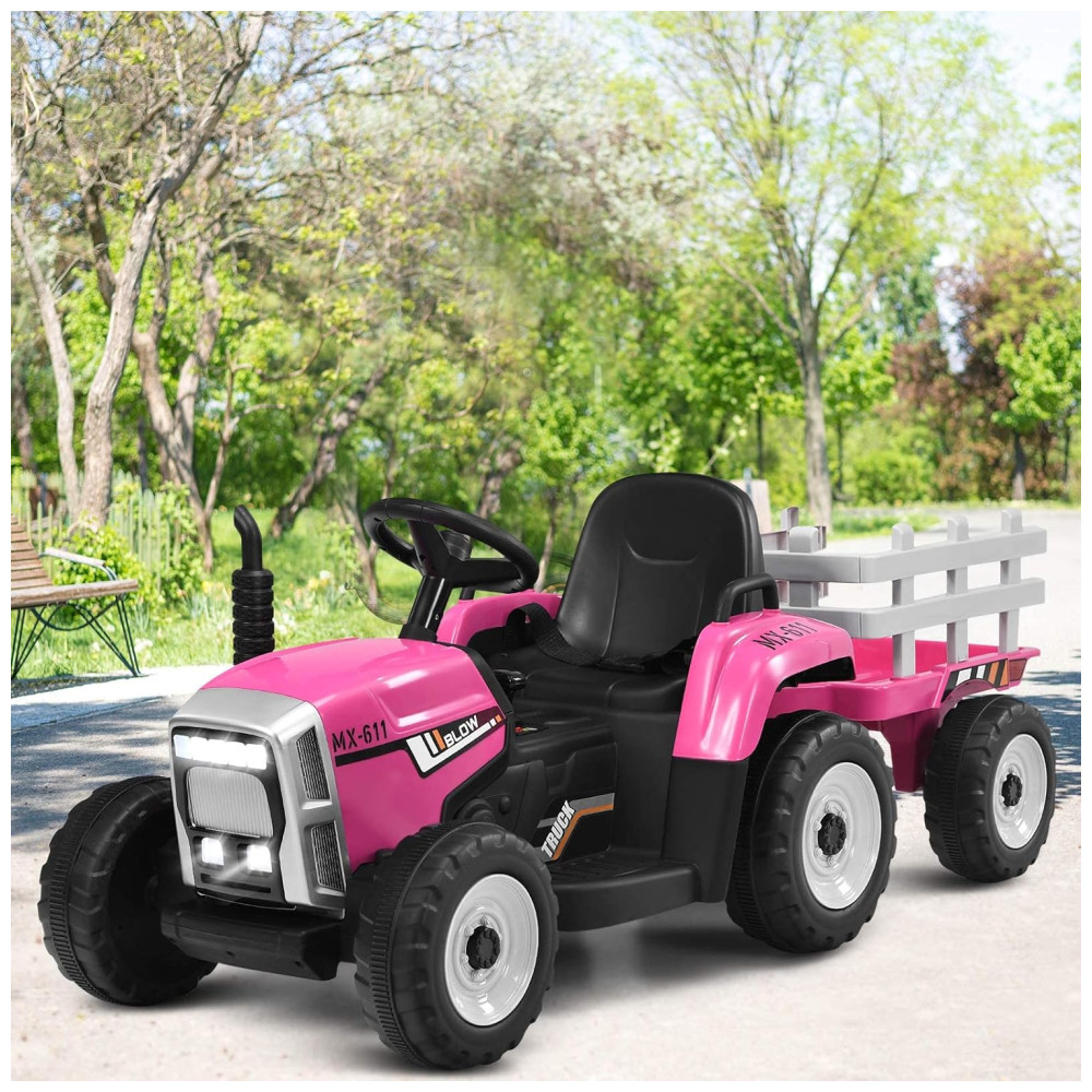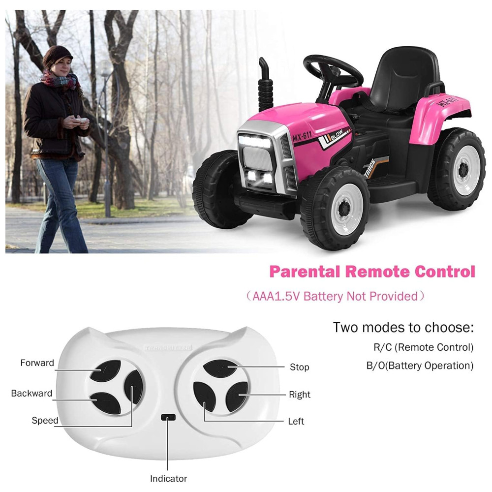 Costzon Trator Elétrico 1 Assento 12V com Luzes de LED Rosa