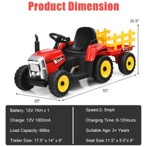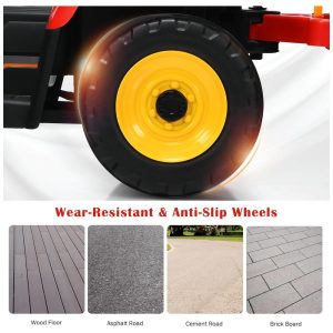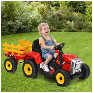 Trailer grande destacável Este trator elétrico é projetado com um grande trailer que as crianças ficarão felizes em usar para transportar brinquedos, flores, palha, etc. O parafuso fácil de remover permite a tração nas quatro rodas.