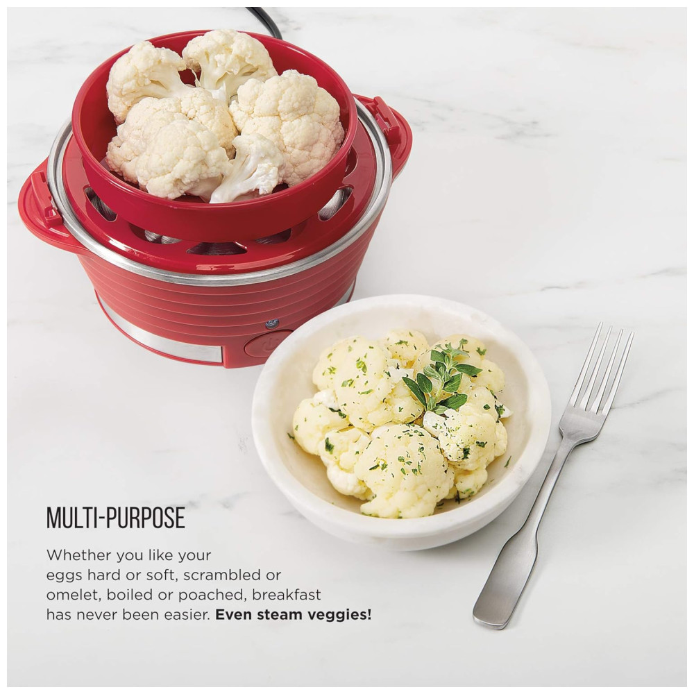 Ferva, cozinhe ou cozinhe no vapor facilmente até 6 ovos em minutos, mais rápido do que o método do fogão. Use o copo medidor incluído para saber quanta água você precisa, dependendo do estilo do ovo. A campainha soará quando seus ovos terminarem de cozinhar.