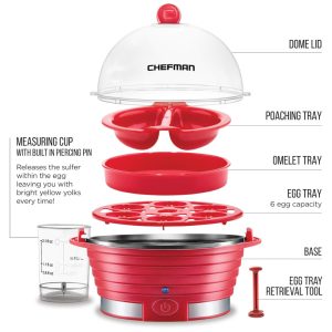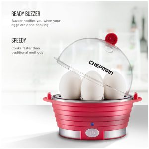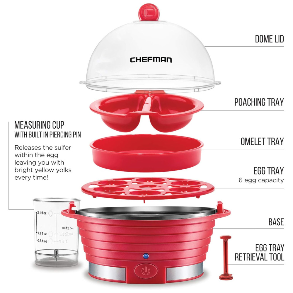 Cozedor de Ovos Elétrico Capacidade 6 360W 110v CHEFMAN Electric Egg Cooker Boiler Vermelho
