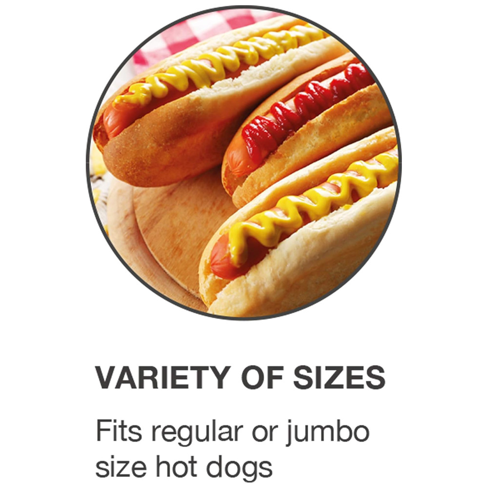 Variedade de tamanhos Serve para cachorros quentes de tamanho normal ou jumbo