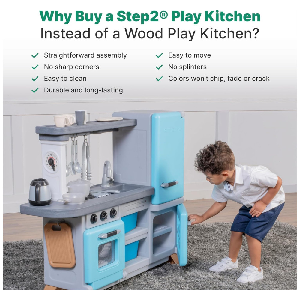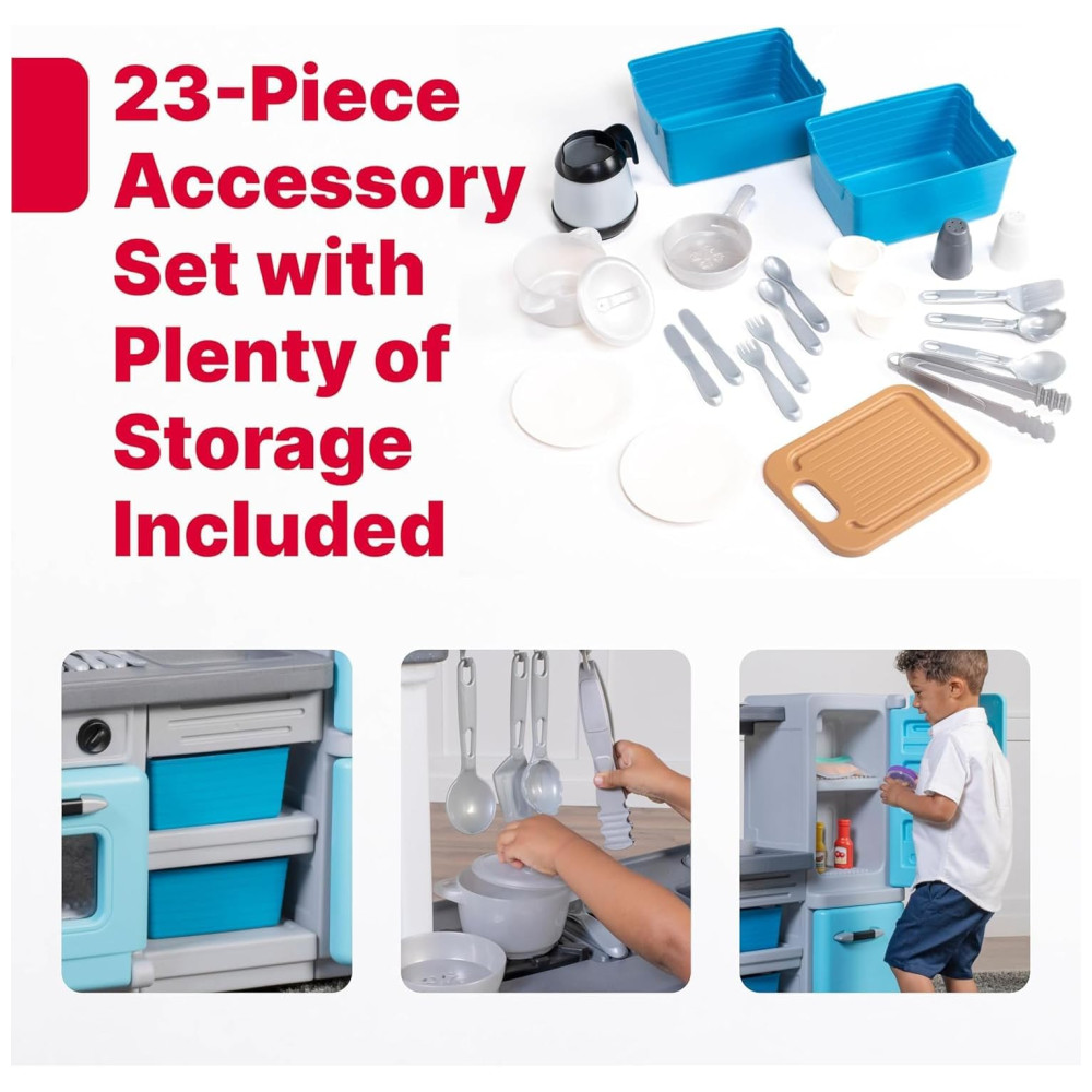 Cozinha de Brinquedo Interativa com Luzes Sons e 23 Acessórios para Crianças de 2 Anos ou Mais Step2 Azul