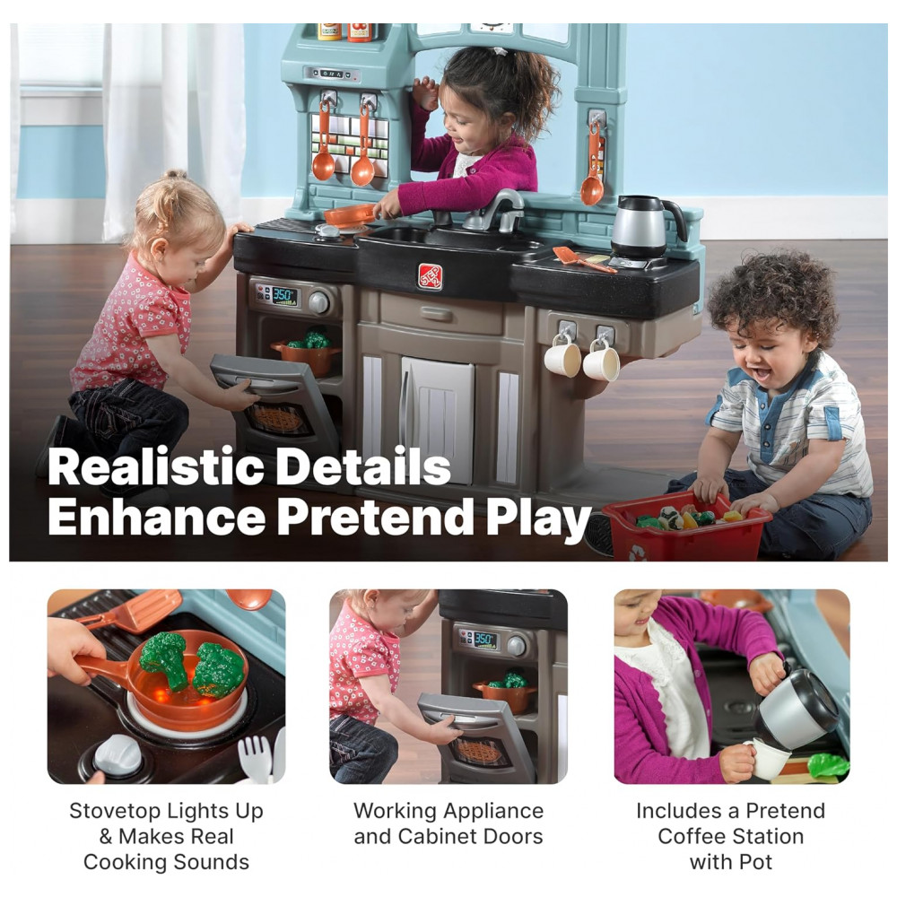 Os pequenos chefs mal podem esperar para se divertir com o Step2 Best Chefs Kitchen Playset. O design elegante e aberto e as cores frescas complementam qualquer área de jogo e permitem um jogo social envolvente