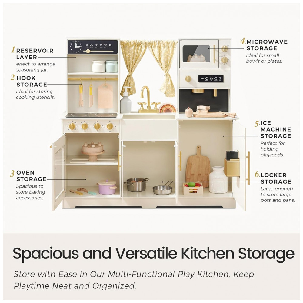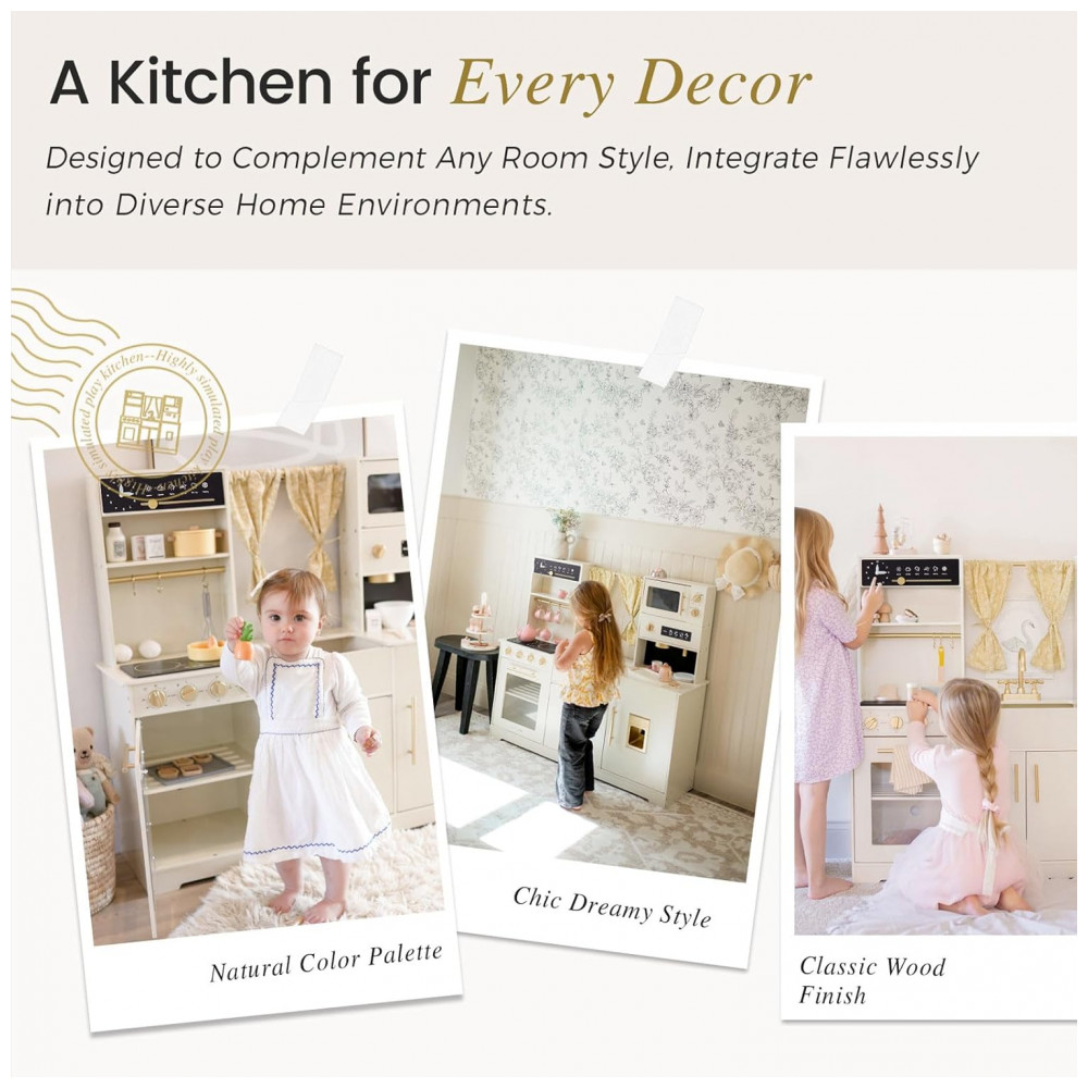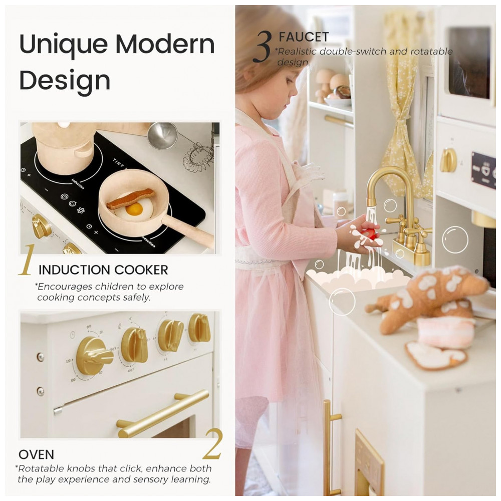 Cozinha de Brinquedo Realista em Madeira para Crianças de 3 a 10 Anos Tiny Land Branca Creme