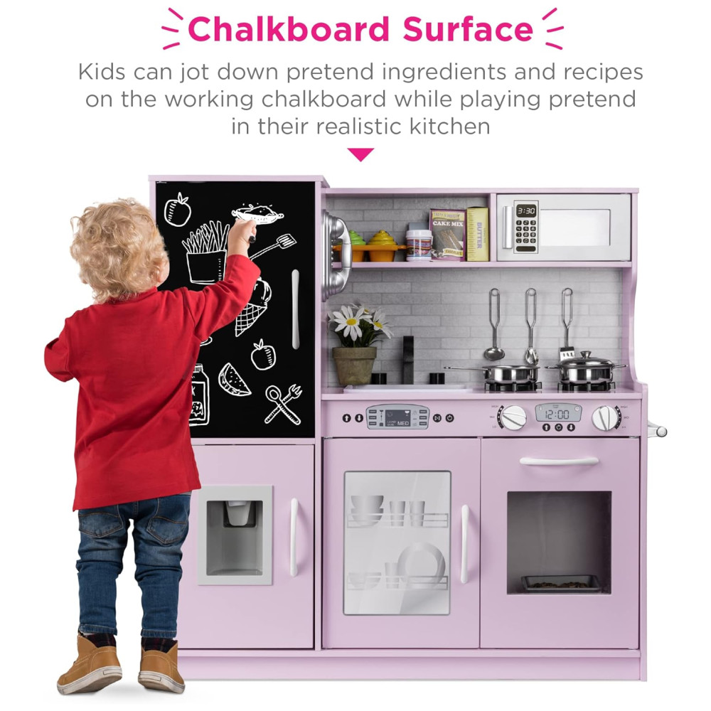 SUPERFÍCIE DE QUADRO Pequenos chefs podem fazer anotações na superfície de quadro negro incluída enquanto brincam de adultos o dia todo com este grande conjunto feito com um design realista que imita uma cozinha real, projetada para seu tamanho e se divertem brincando com a máquina de fazer gelo, micro ondas , telefone e outros recursos divertidos