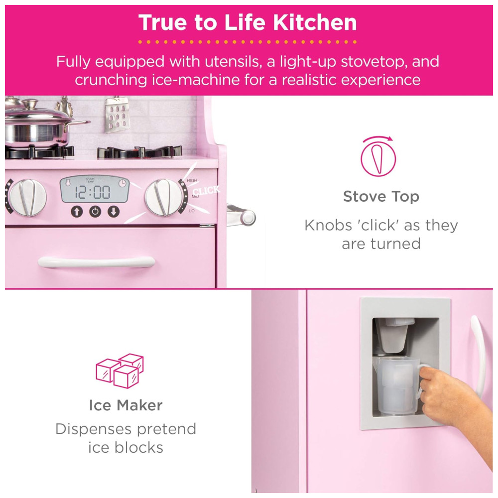 Cozinha de Brinquedo Realista em Madeira para Crianças de 3 a 6 Anos Best Choice Rosa