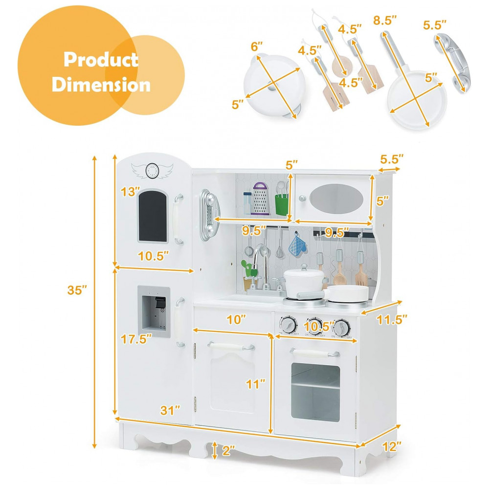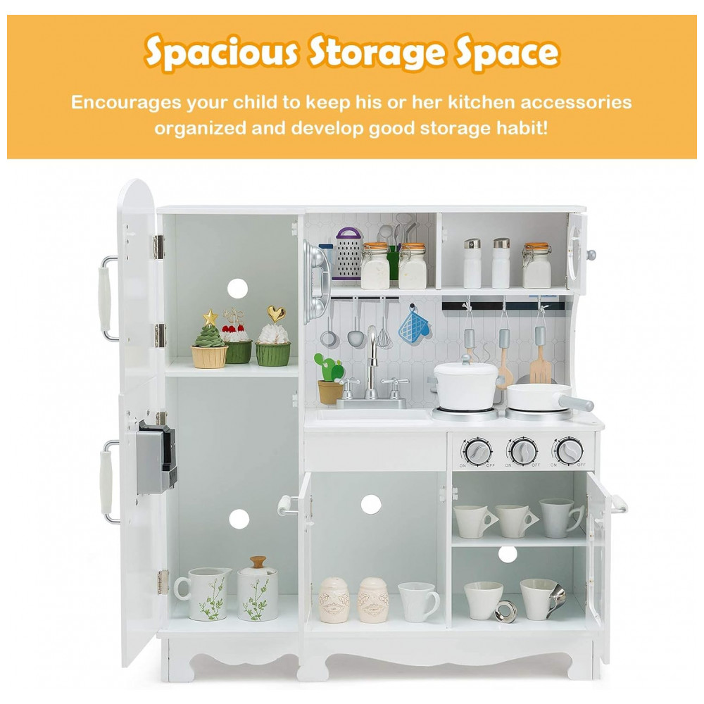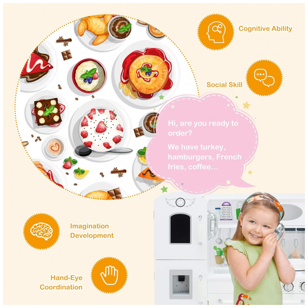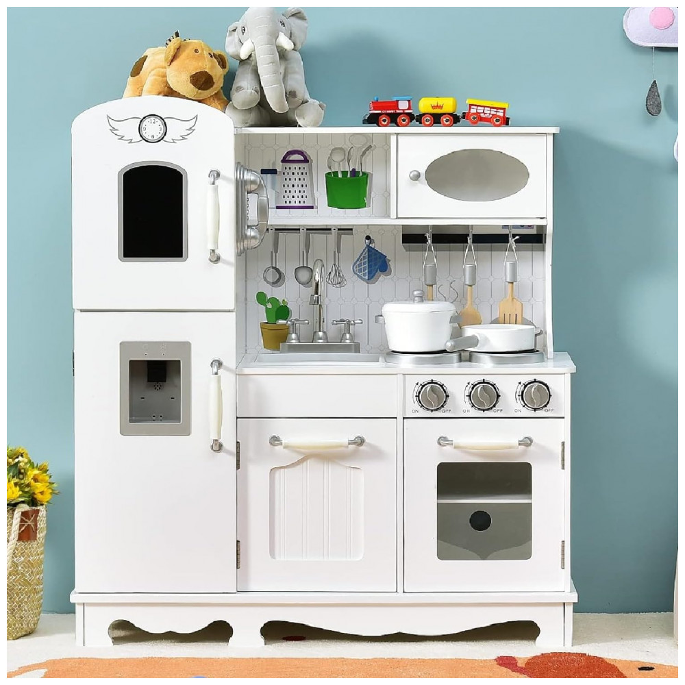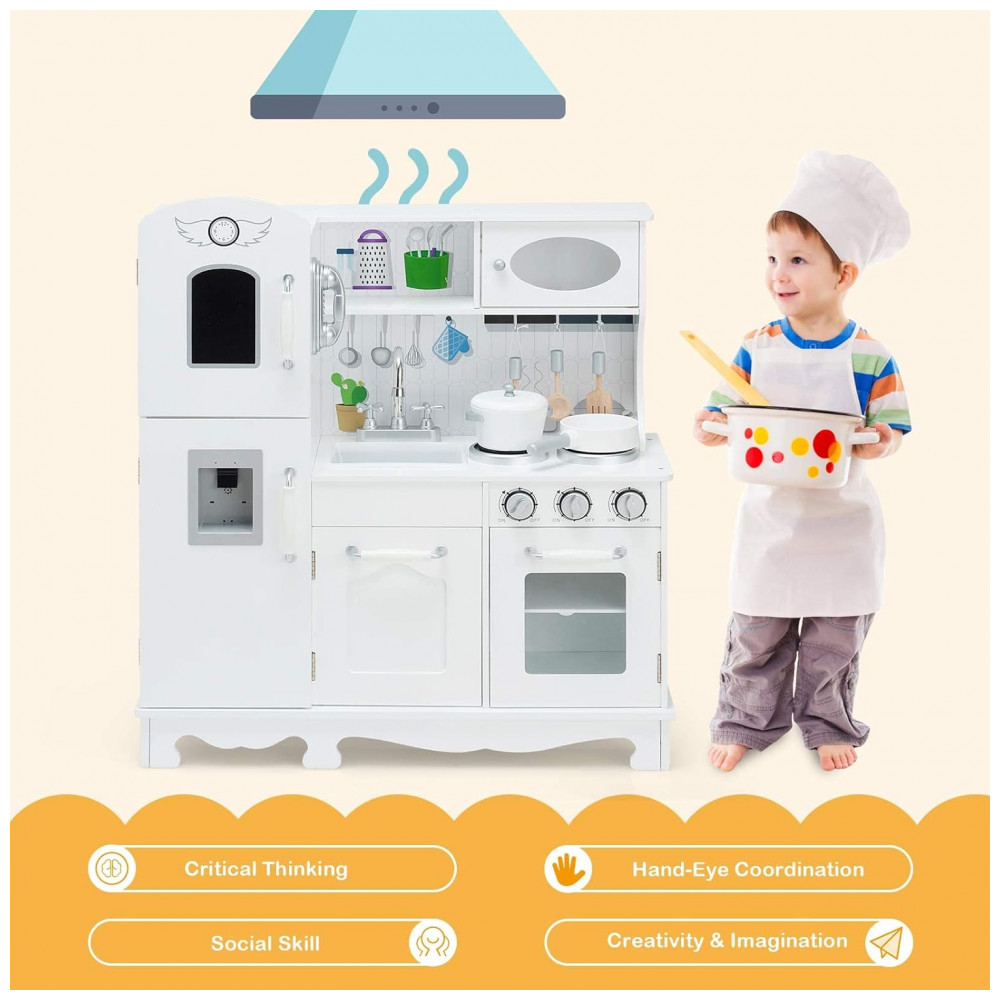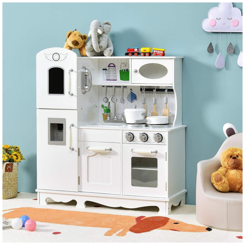 Cozinha de Brinquedo Realista em Madeira para Crianças de 3 a 8 Anos Costzon Branca