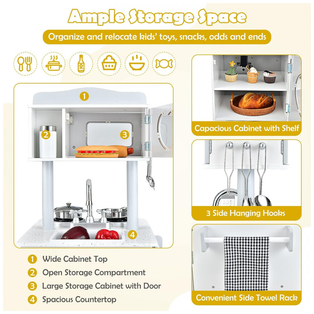Cozinha de Brinquedo Realista em Madeira para Crianças de 3 a 8 Anos HONEY JOY Branca