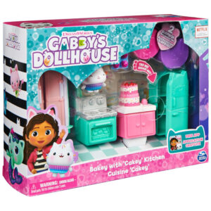 Cozinha do Bakey com Cakey da Casa de Bonecas da Gabby’s Dollhouse com Boneco e 3 Acessórios 3 Móveis
