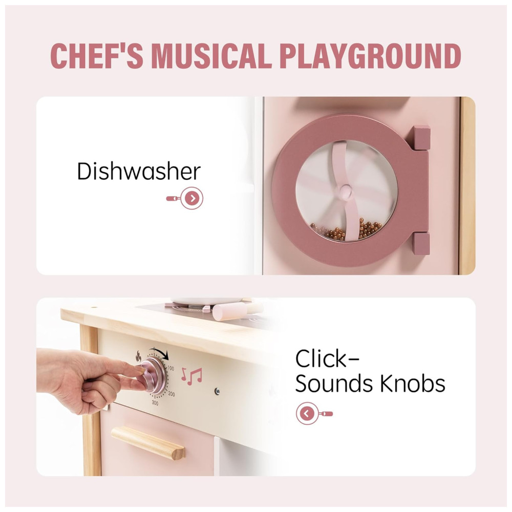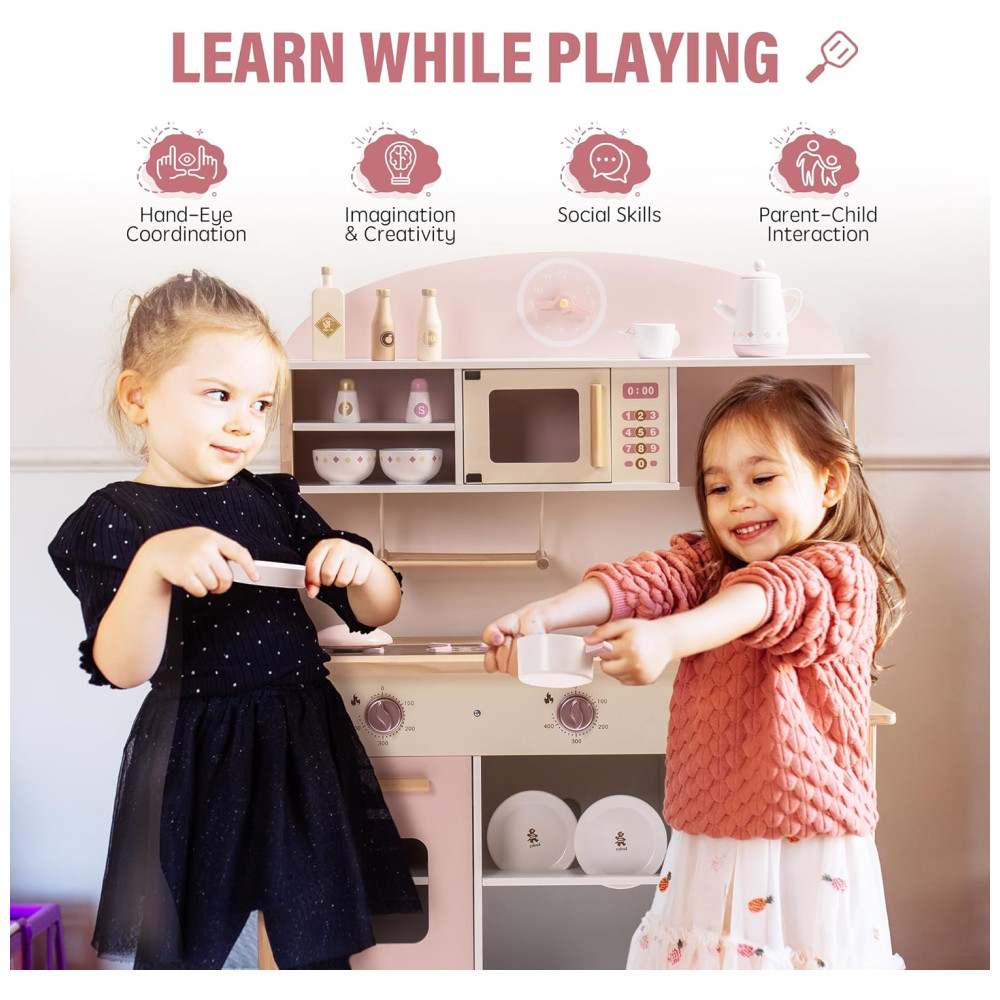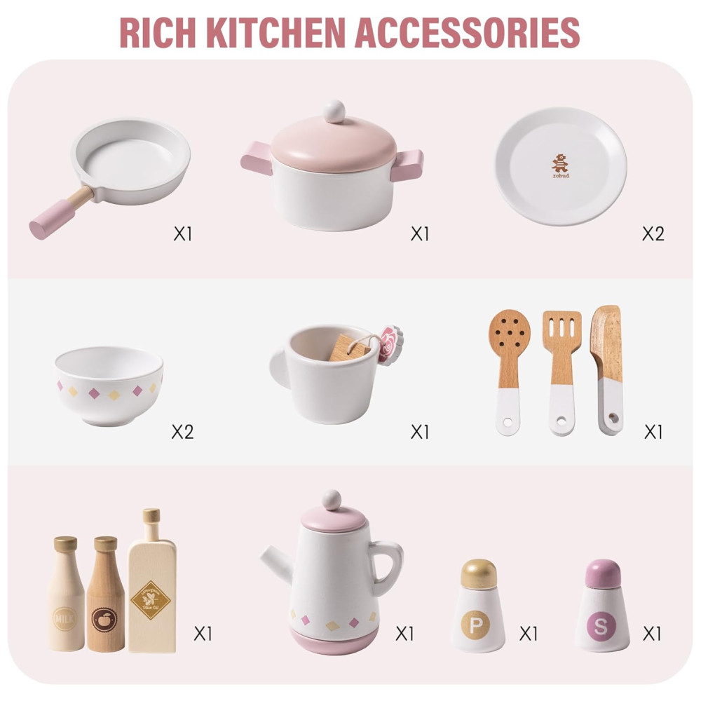 Cozinha Educativa de Brinquedo ROBUD em Madeira com Acessórios Realistas Conjunto com Recursos de Jogo e Design Moderno para Crianças