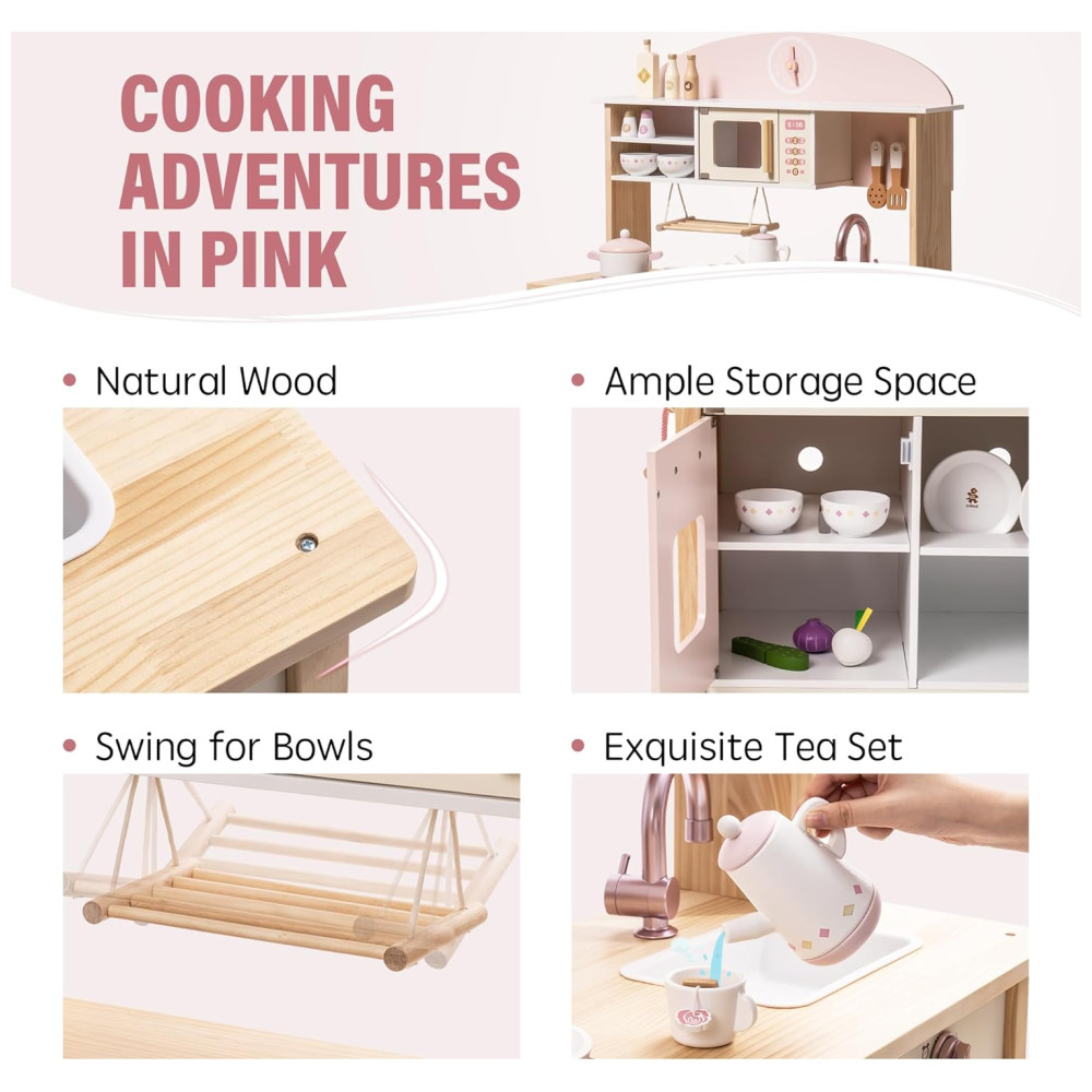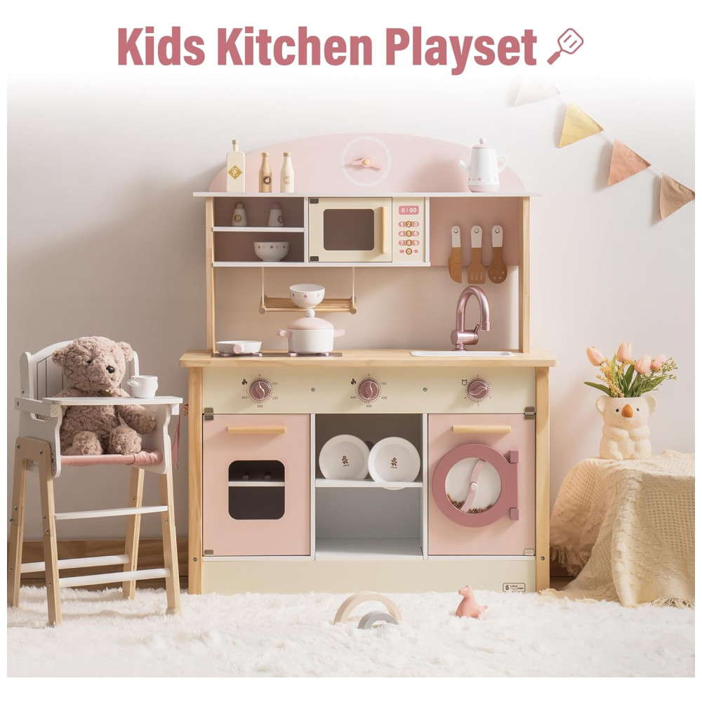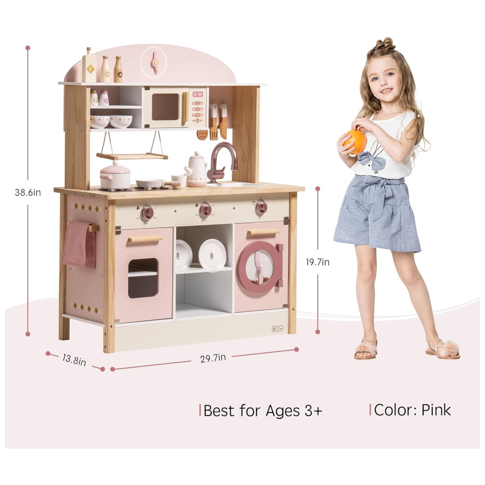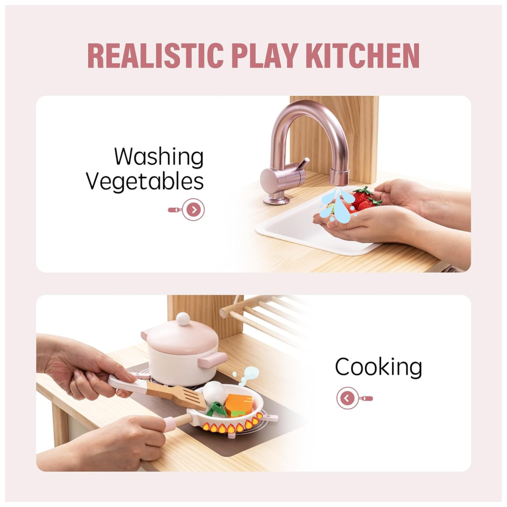 Cozinha Educativa de Brinquedo ROBUD em Madeira com Acessórios Realistas Conjunto com Recursos de Jogo e Design Moderno para Crianças