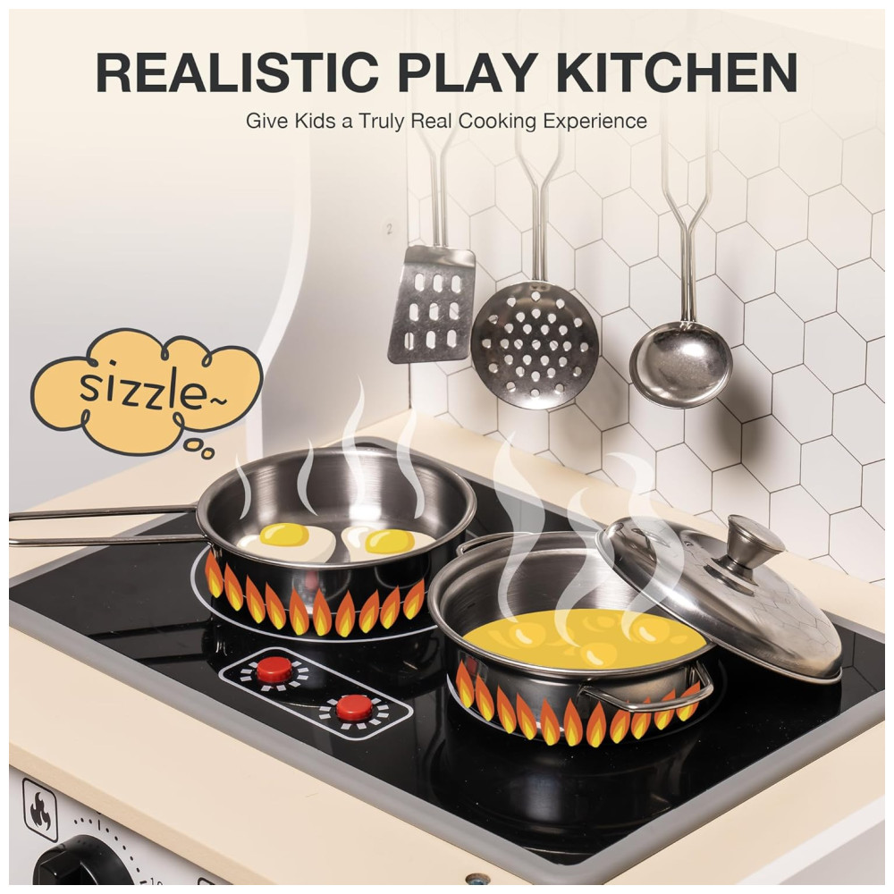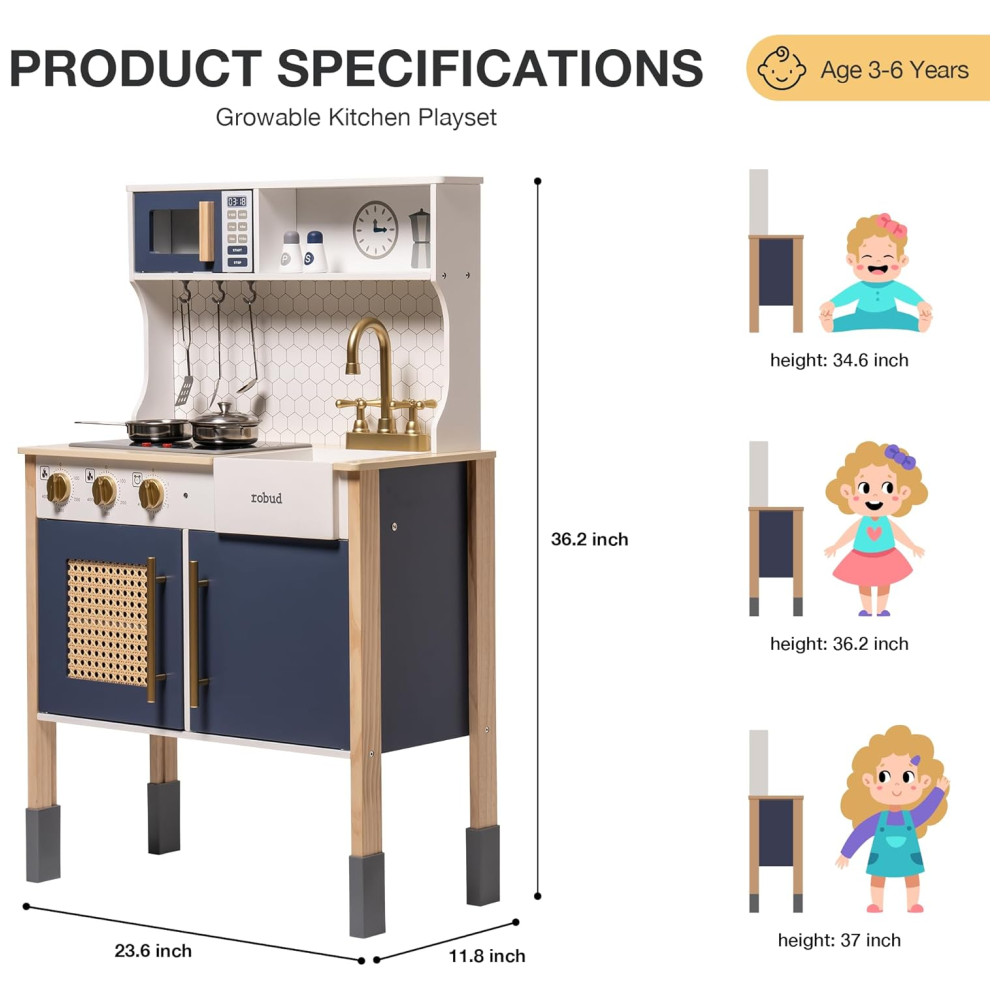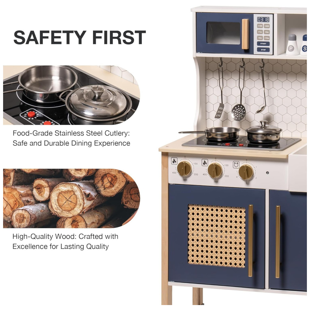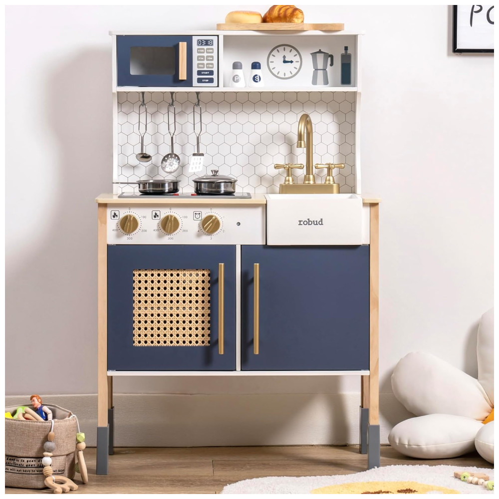 Cozinha Educativa de Madeira ROBUD com Luzes e Sons para Meninos e Meninas – Brinquedo de Faz de Conta Presente Interativo para Crianças