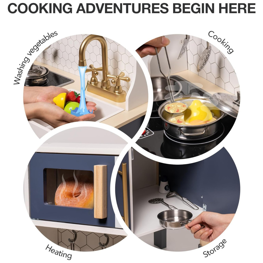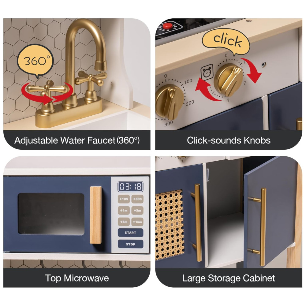 ELEGÂNCIA RETRÔ E ATEMPORAL: Mergulhe seu filho em um mundo de charme vintage com a cozinha de brinquedo ROBUD. Seu design americano retrô, realçado por uma torneira dourada brilhante e marcantes detalhes em azul safira, a torna uma peça de destaque em qualquer sala de brincar. Não é apenas um brinquedo, é uma declaração de estilo. EXPERIÊNCIA DE BRINCADEIRA SUPREMA: Desperte a imaginação da criança com efeitos sonoros realistas do fogão eletrônico e feedback tátil dos botões ajustáveis. Cada torção e volta dão vida à cozinha, oferecendo uma aventura culinária autêntica que é divertida e educativa. ESTIMULANDO O CRESCIMENTO ATRAVÉS DA BRINCADEIRA: Deixe seu pequeno assumir o papel de chef, explorando as infinitas possibilidades de criatividade, imaginação e autoexpressão. Enquanto preparam banquetes fictícios, eles também constroem confiança e aprendem habilidades valiosas para a vida. CONFECCIONADA COM EXCELÊNCIA PREMIUM: A cozinha de brinquedo ROBUD é meticulosamente construída com madeira de alta qualidade, acabamento em tinta atóxica. Não é apenas durável, é projetada para resistir a anos de brincadeira. Certificada para segurança e solidez, este conjunto de cozinha é tão confiável quanto encantador. O PRESENTE EMPOLGANTE PARA ALEGRIA DURADOURA: Com sua construção durável e acessórios cuidadosamente projetados, a cozinha de brinquedo ROBUD, medindo 60 x 30 x 92 centímetros, é o presente ideal para despertar horas infinitas de brincadeira imaginativa e criar memórias que serão lembradas para a vida toda.