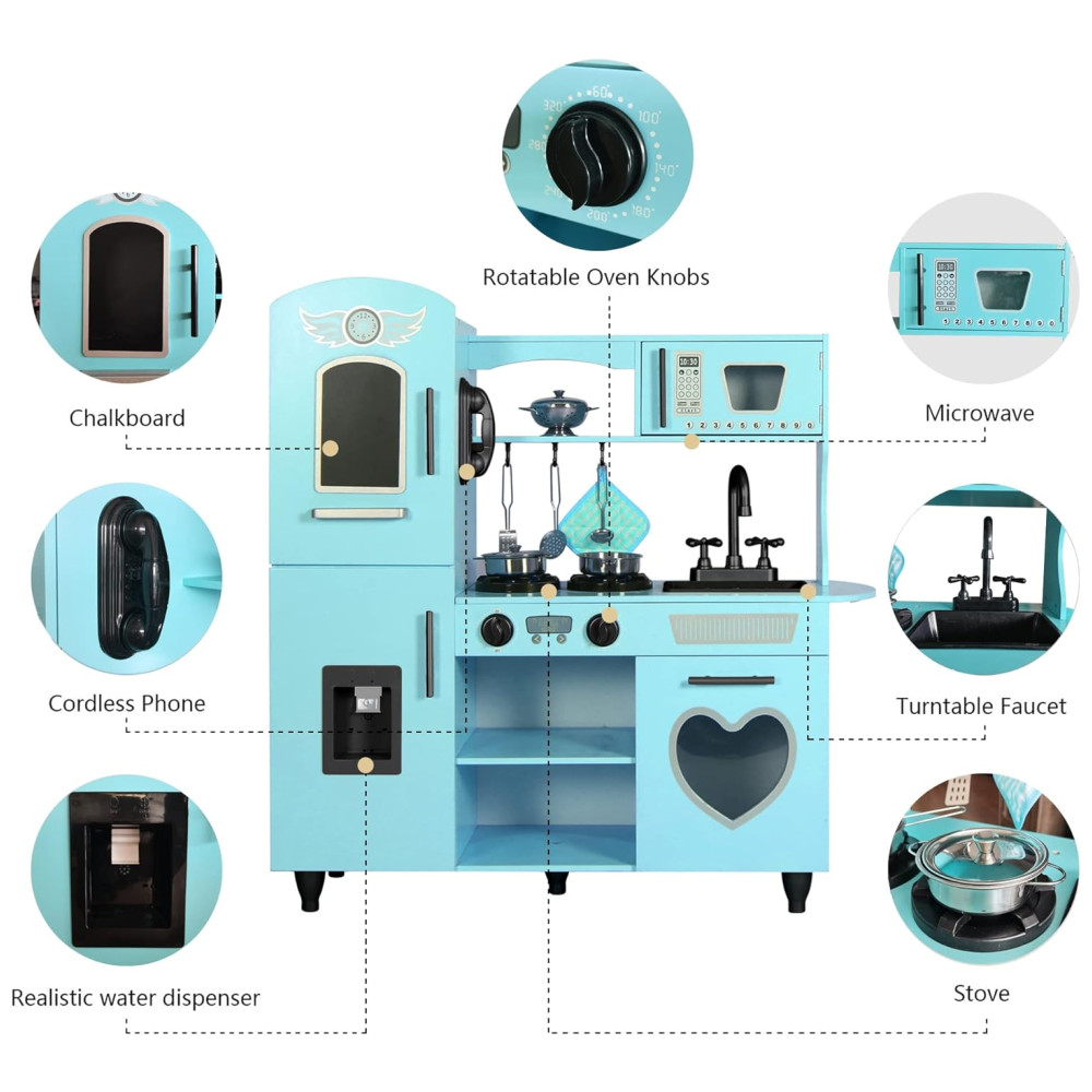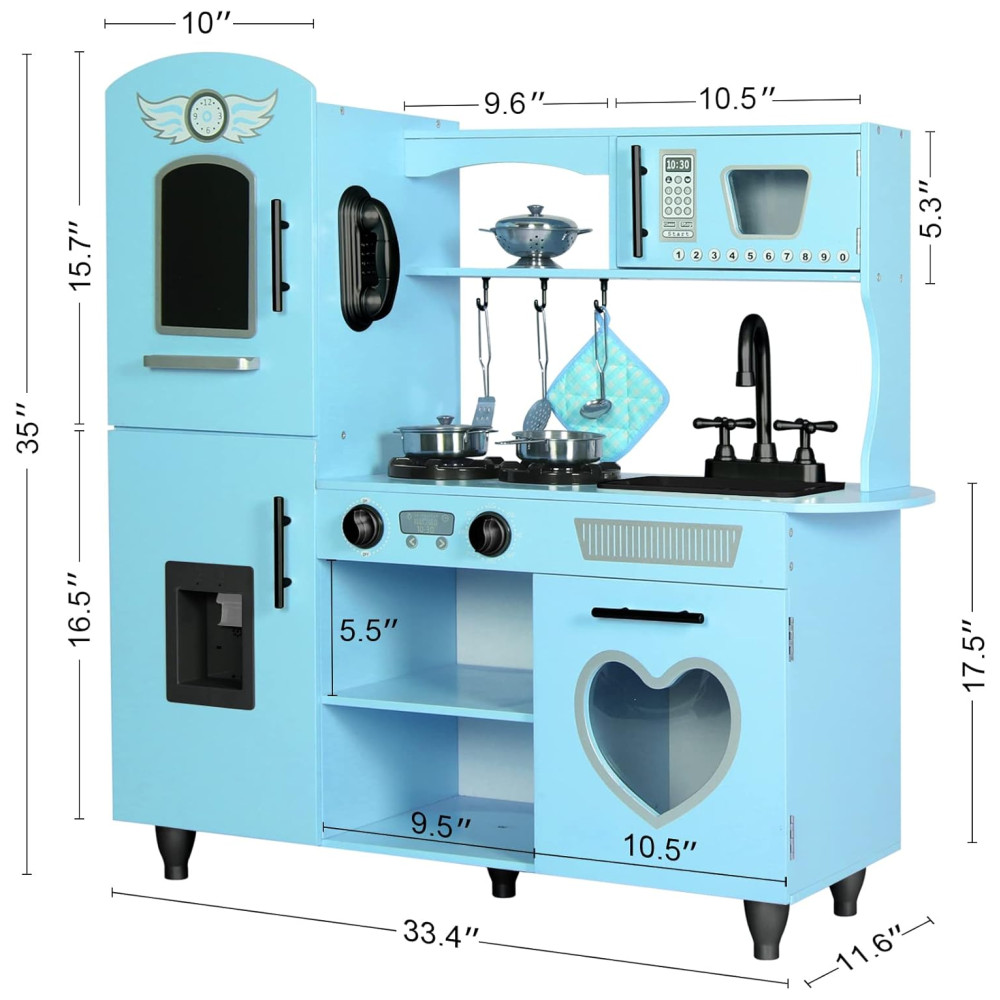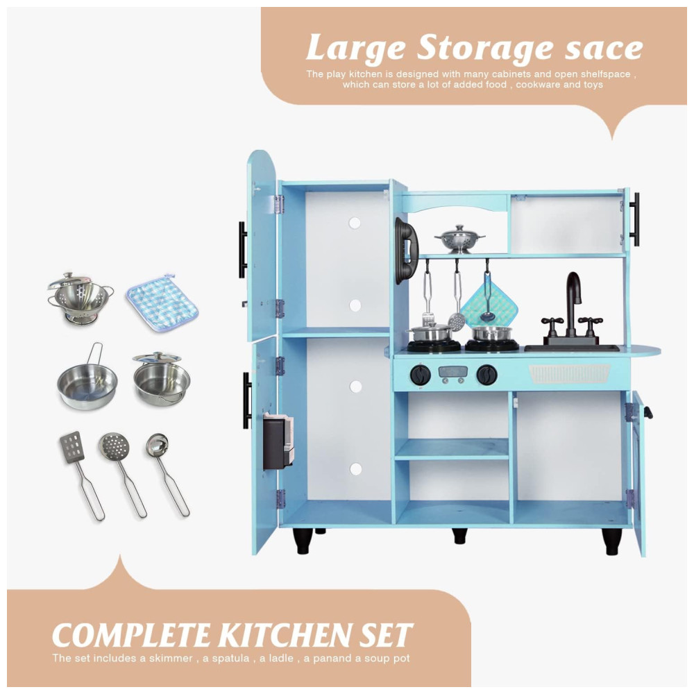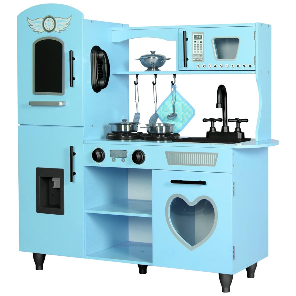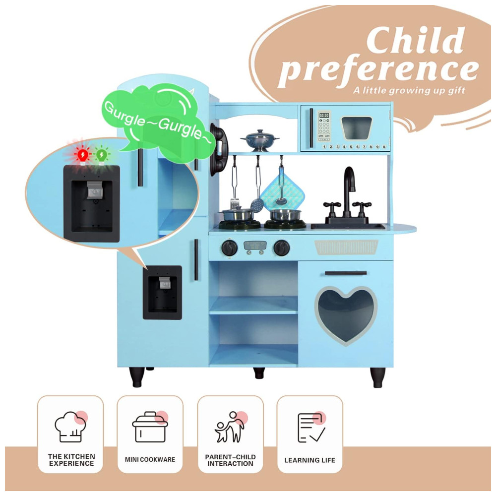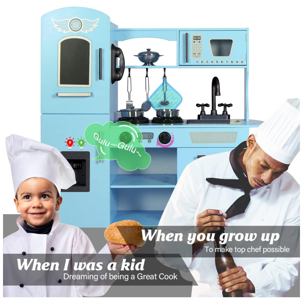 Cozinha Infantil em Madeira com 7 Utensílios Luzes e Sons Realistas para Crianças Acima de 3 Anos TaoHFE Azul