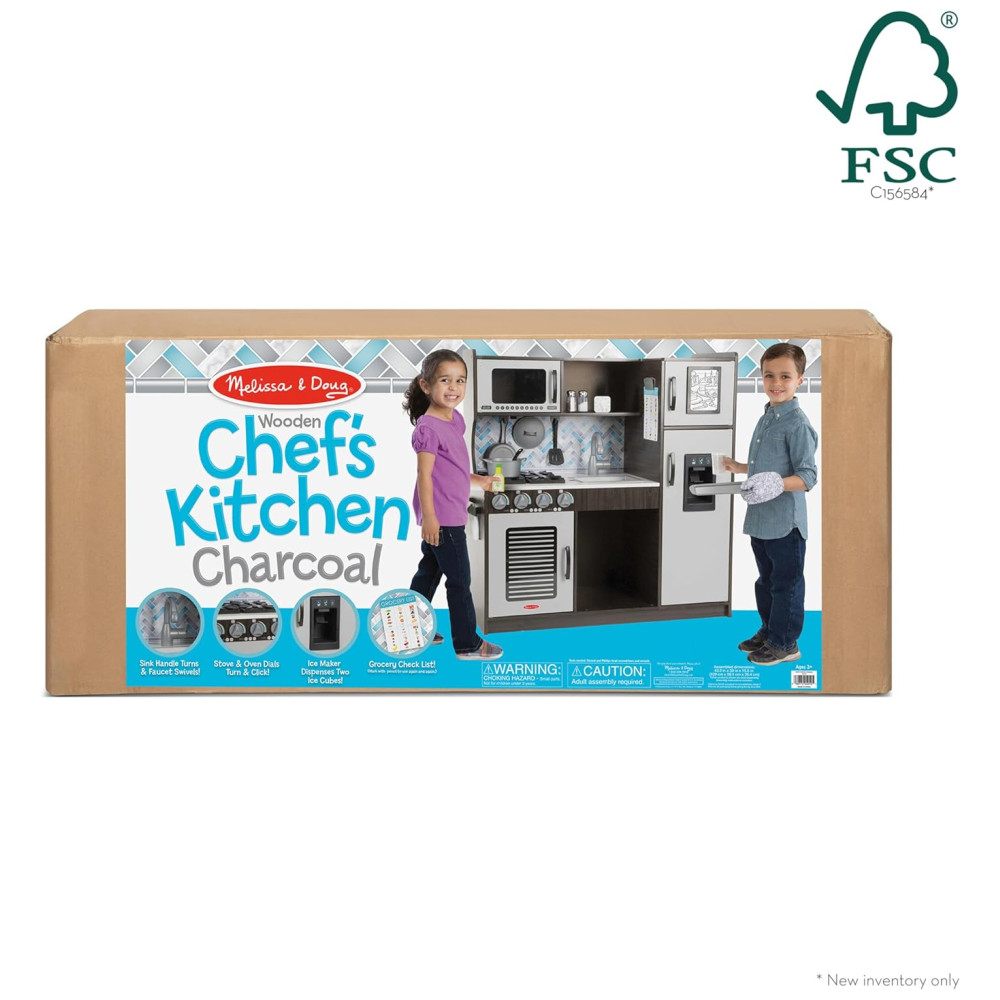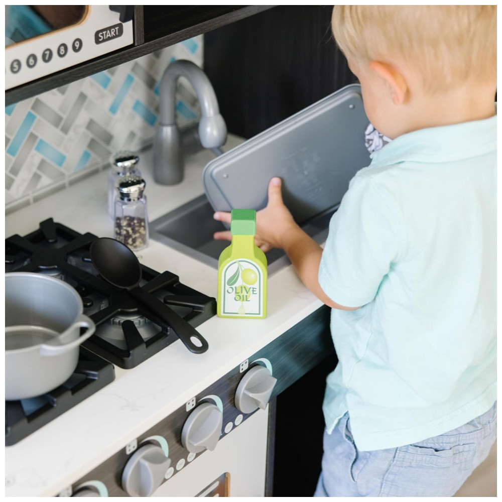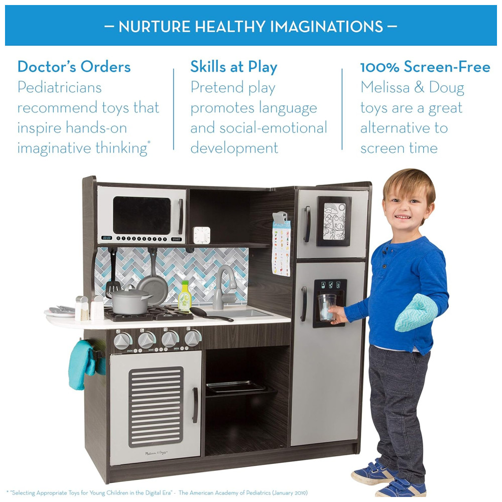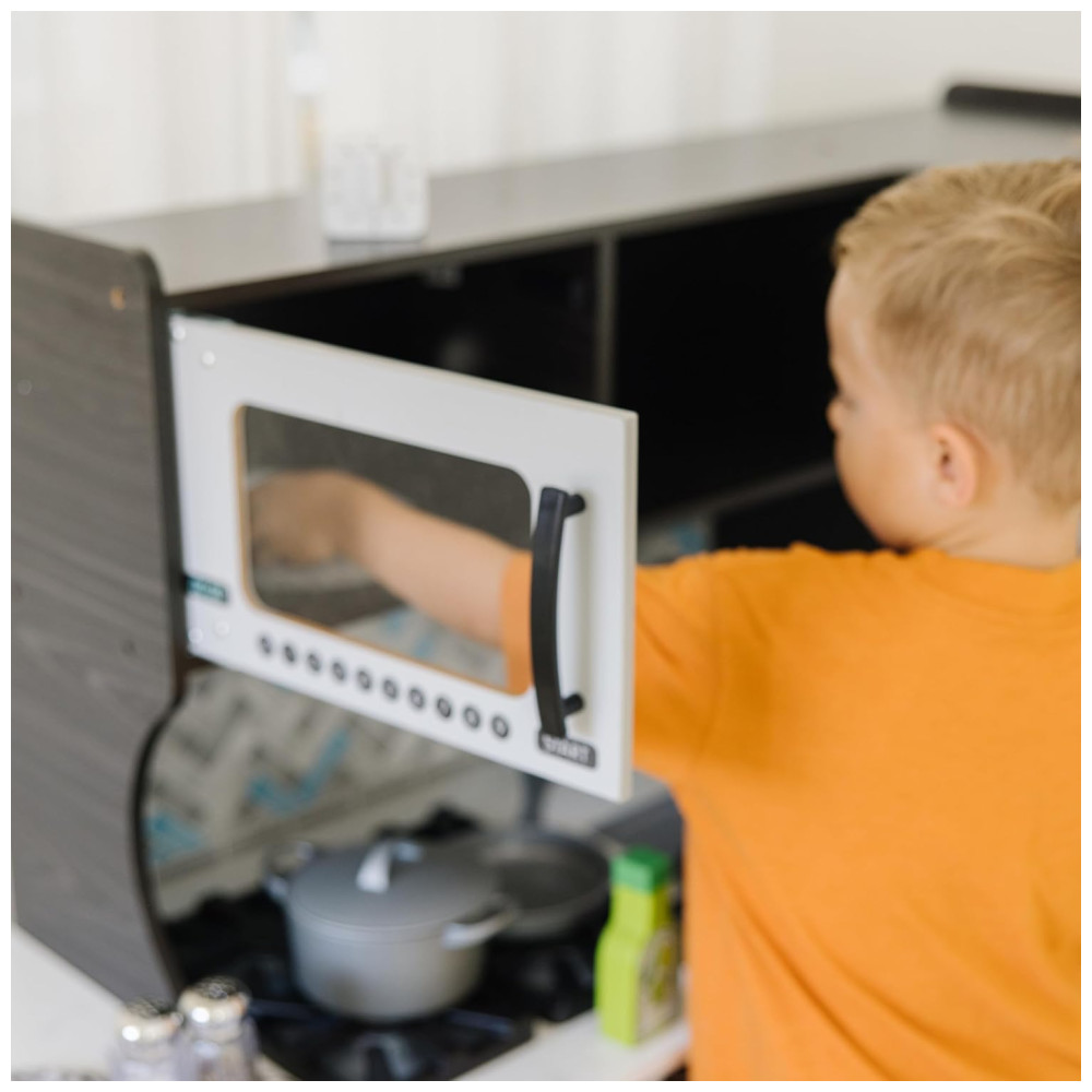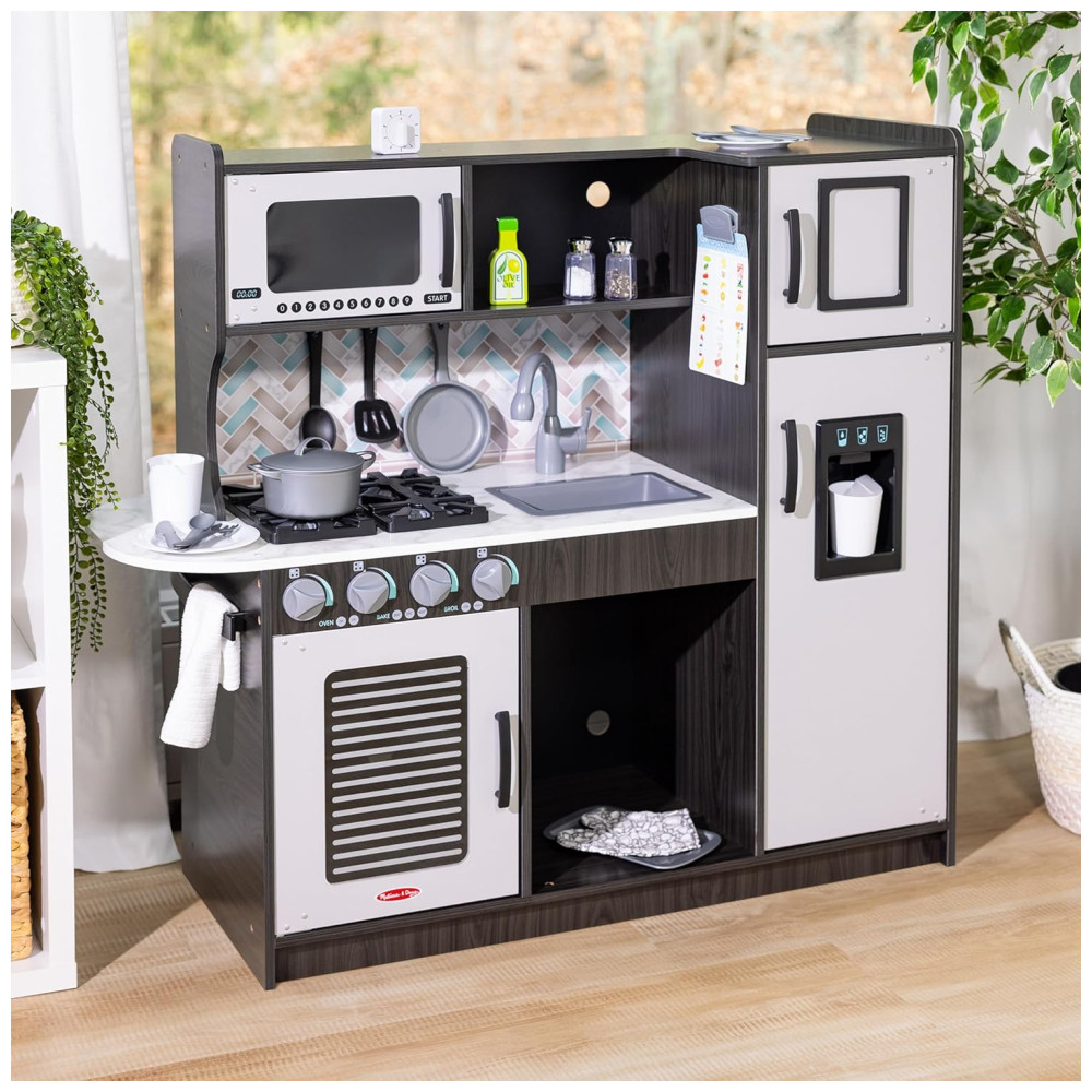Cozinha Infantil em Madeira com Forno Fogão Micro-Ondas Pia e Geladeira com Dispensador de Gelo Melissa Doug Preta