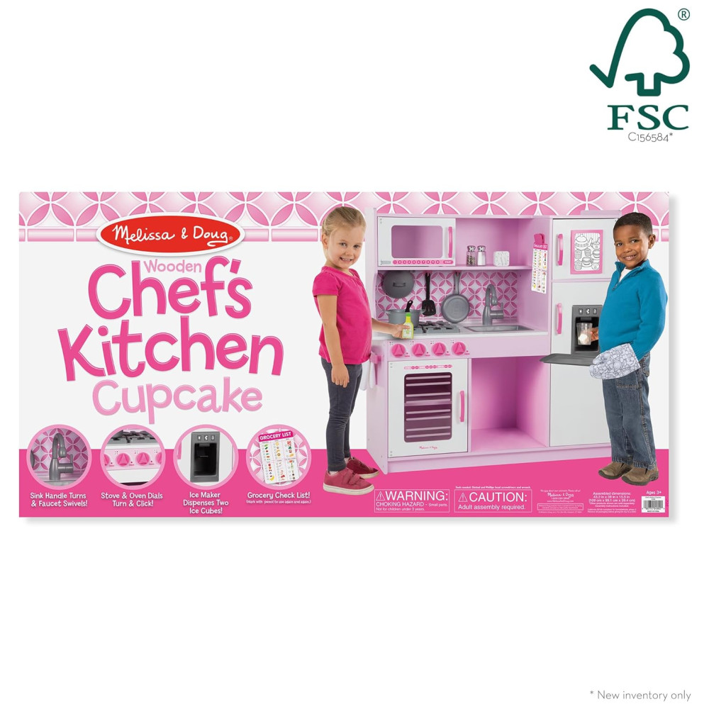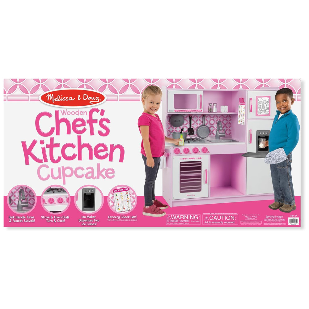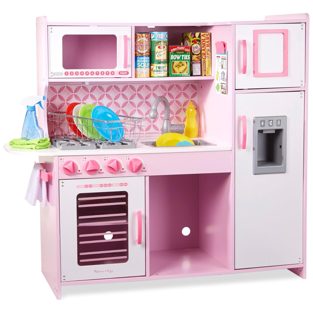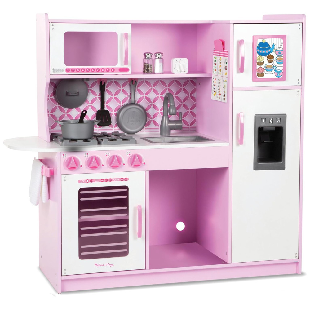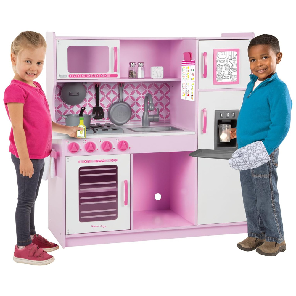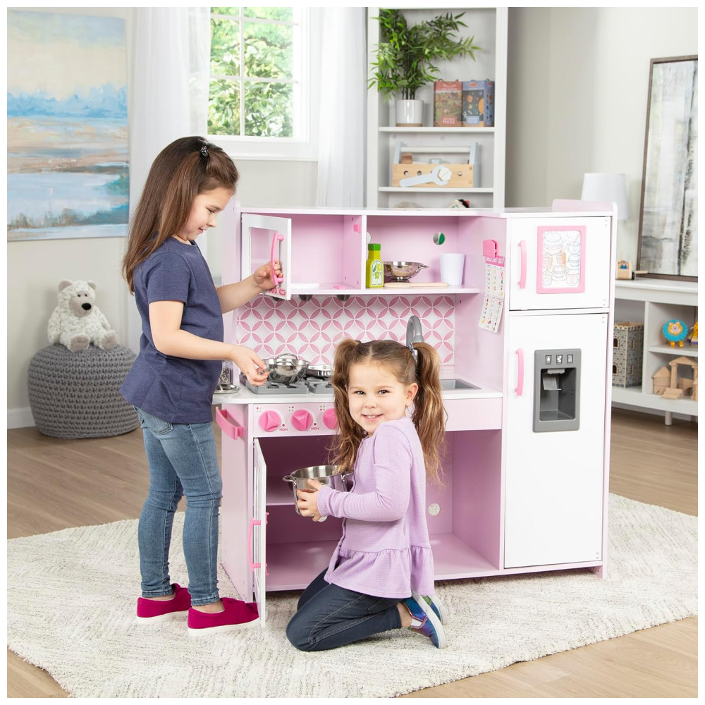 Cozinha Infantil em Madeira com Forno Fogão Micro-Ondas Pia e Geladeira com Dispensador de Gelo Melissa Doug Rosa