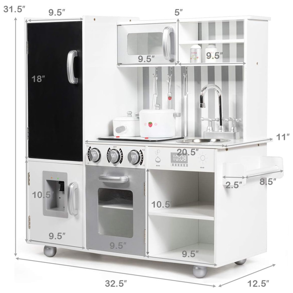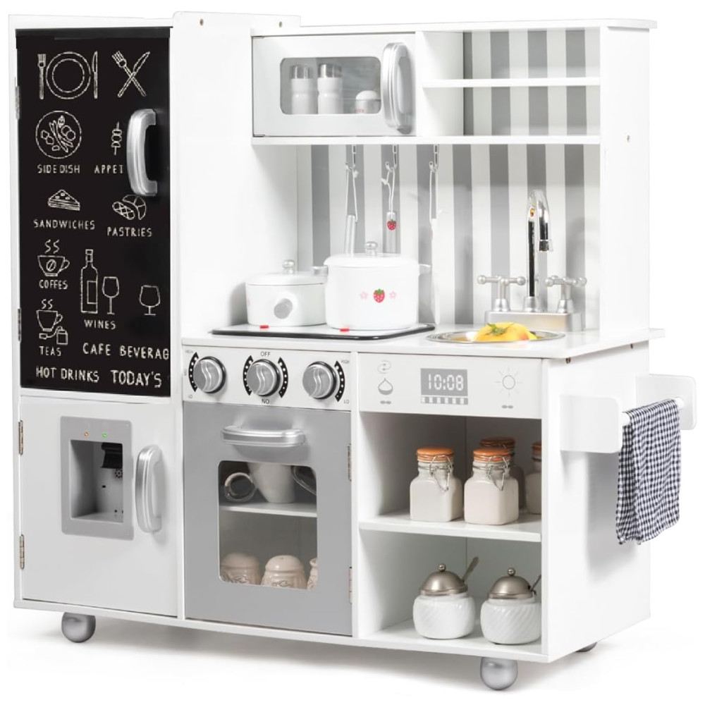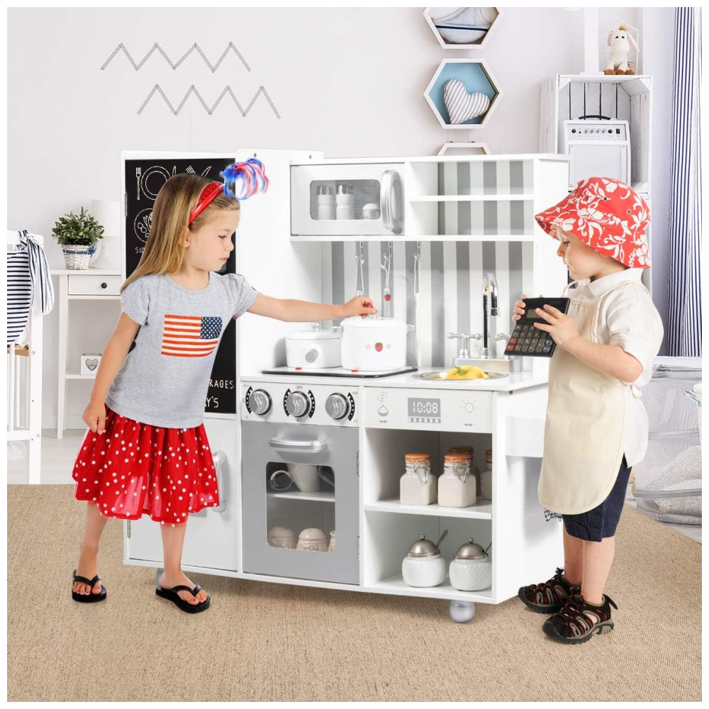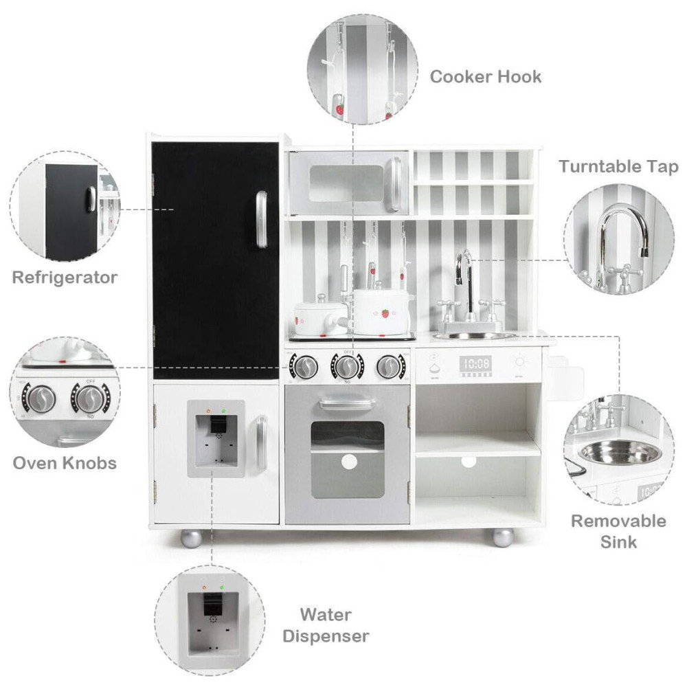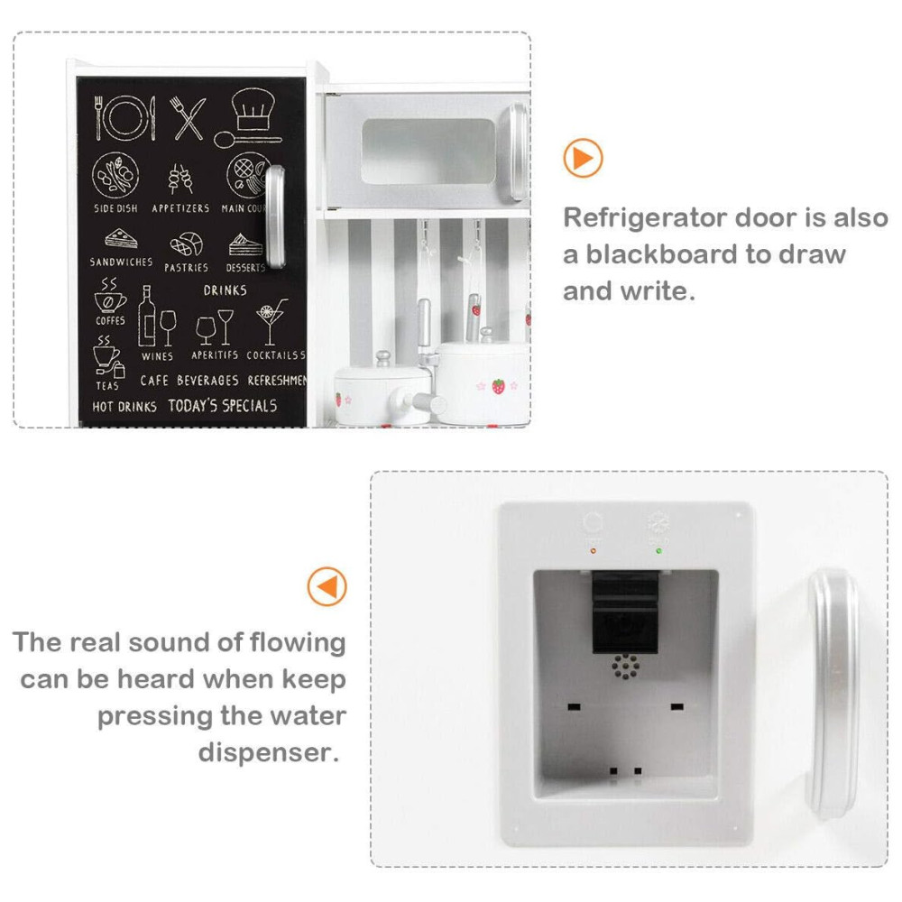 Cozinha Infantil em Madeira com Som Realista Quadro Negro Dispensador de Água Forno e Pia para Crianças Acima de 3 Anos Costzon Branco
