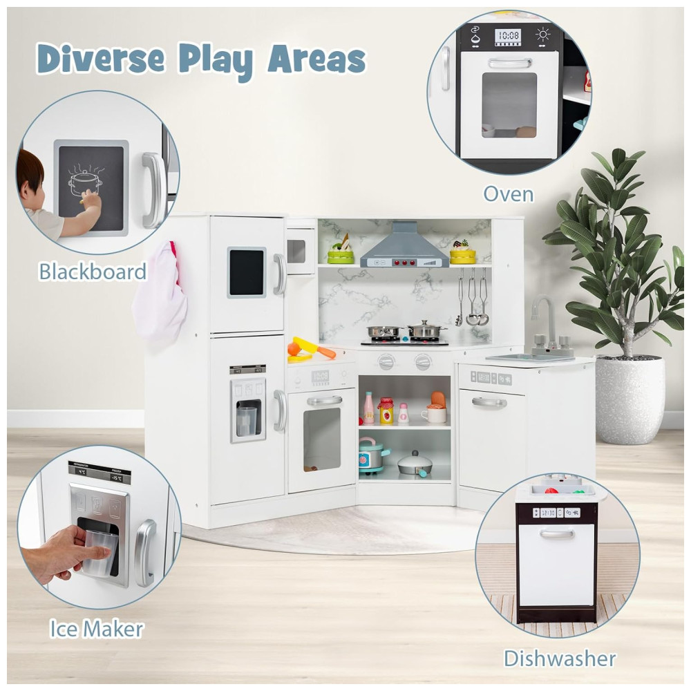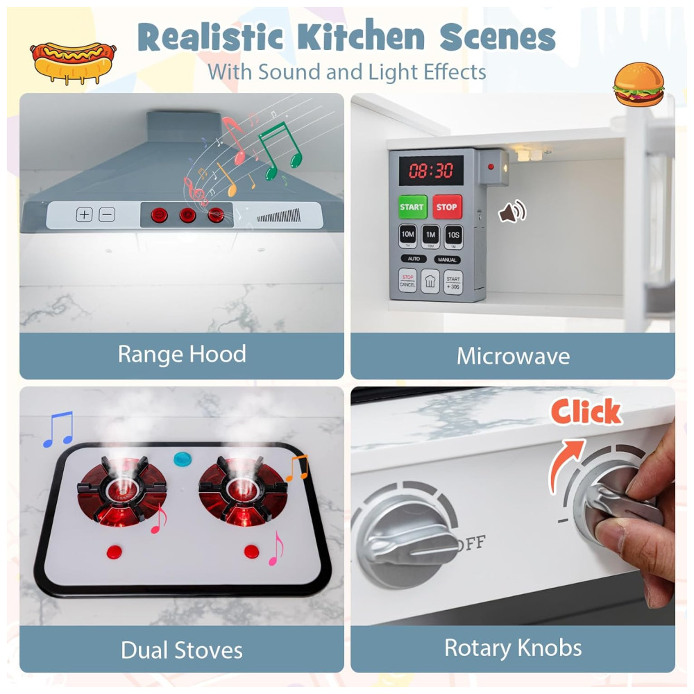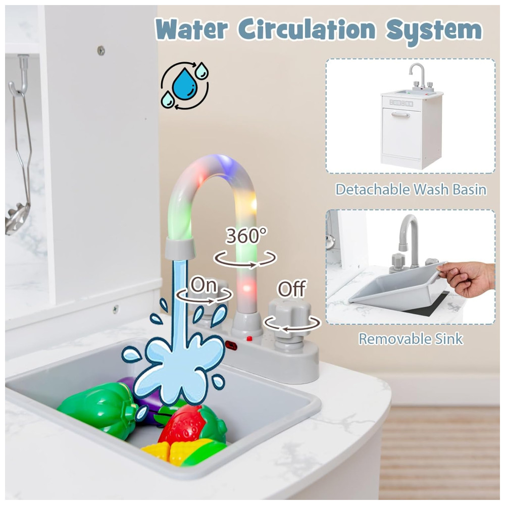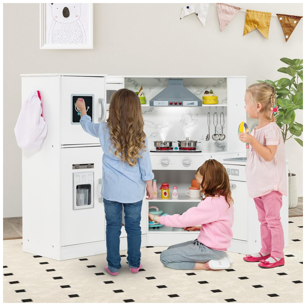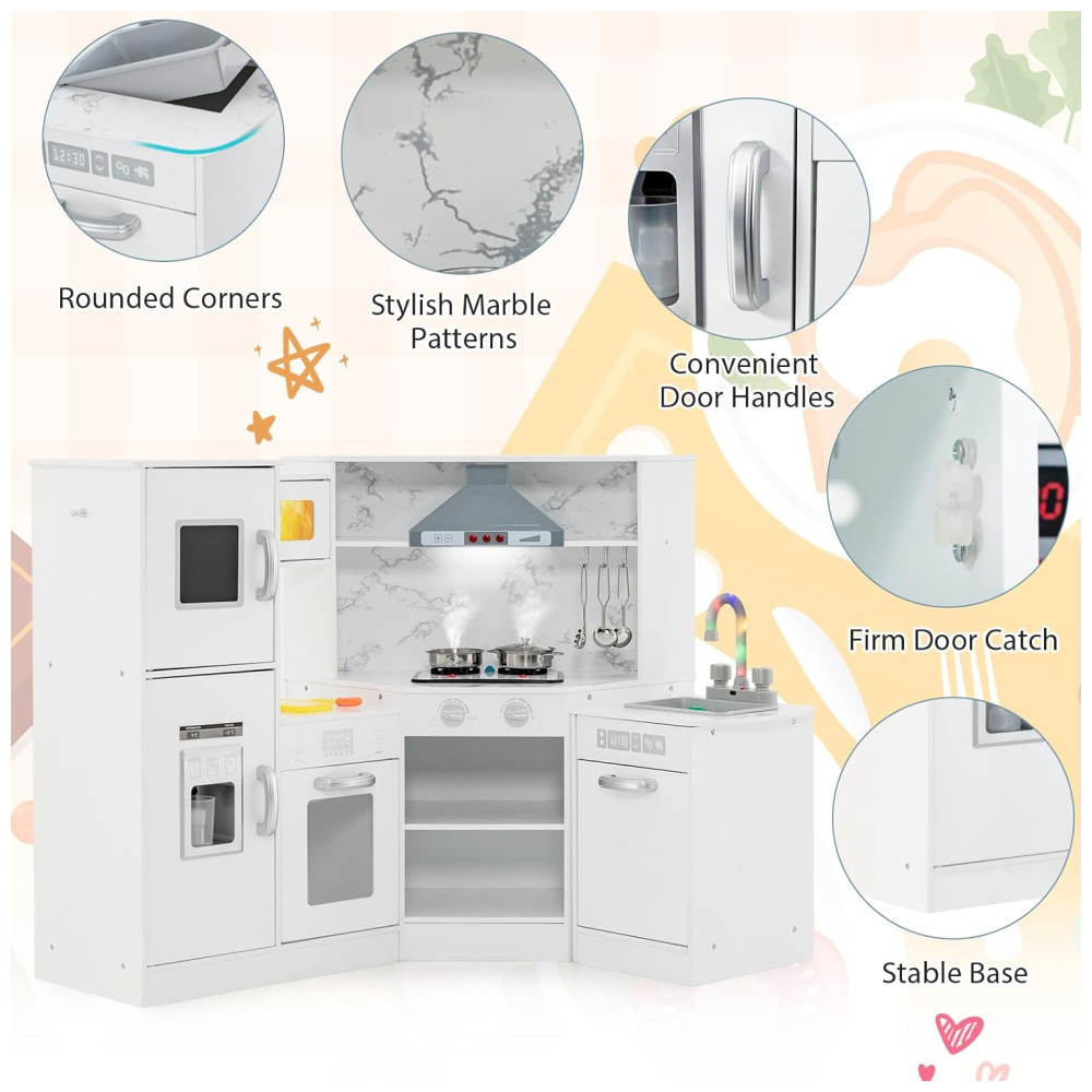 Cozinha Infantil em Madeira com Sons Realistas Luz e Vapor para Crianças Acima de 3 Anos Costzon Branca