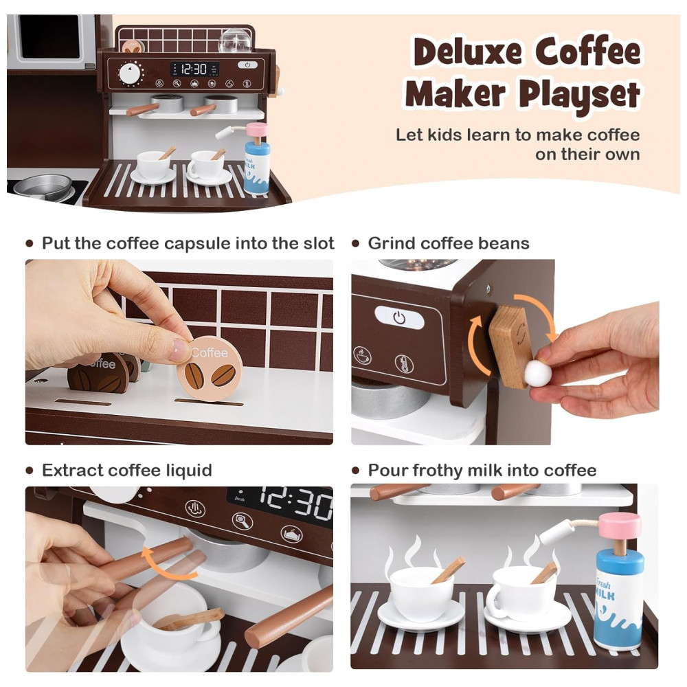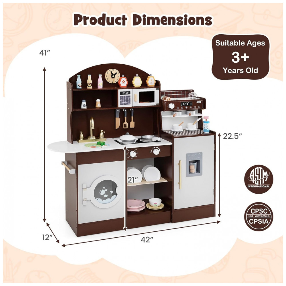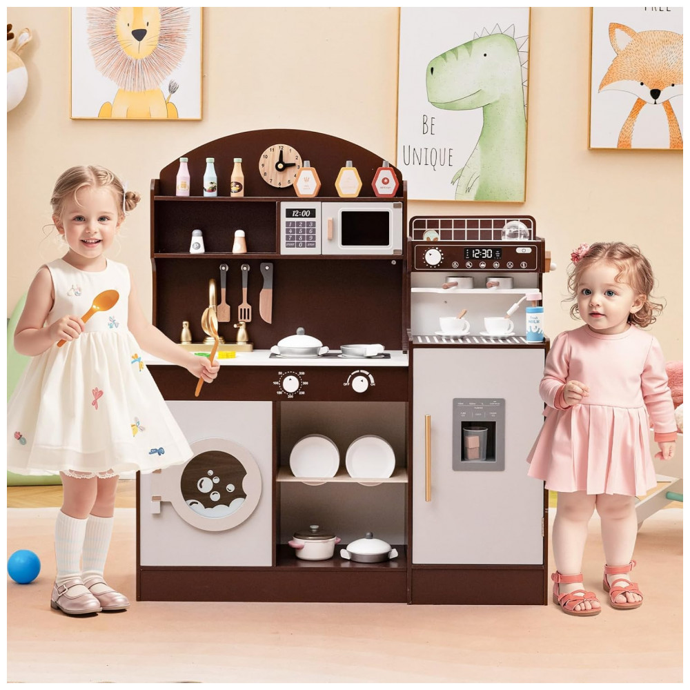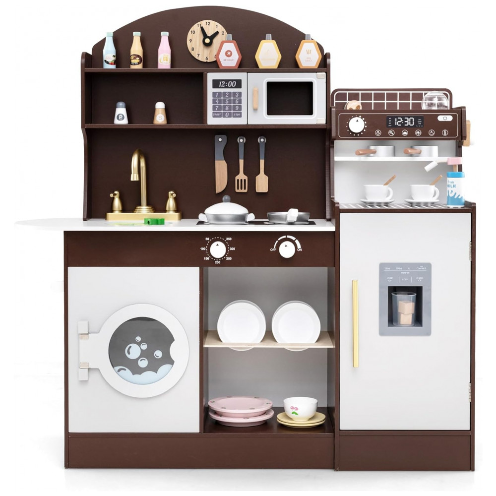 O conjunto oferece uma experiência de cozinha realista, com eletrodomésticos de mentira, botão clicável do fogão e forno para cozinhar ingredientes de mentira, torneira, pia removível, toalheiro, toalha e outros gadgets. Possui ainda grande espaço de armazenamento, com porta embaixo da pia e espaço no forno para guardar alimentos ou utensílios de cozinha.