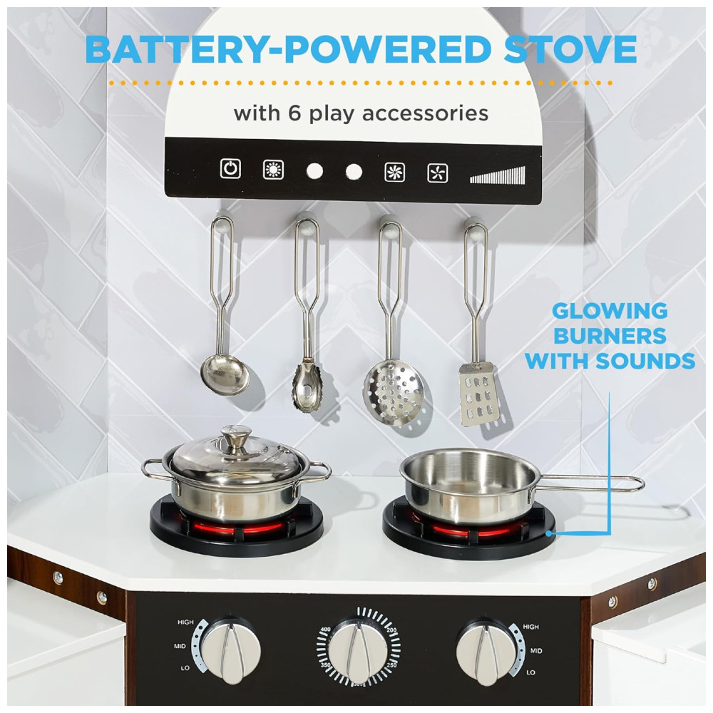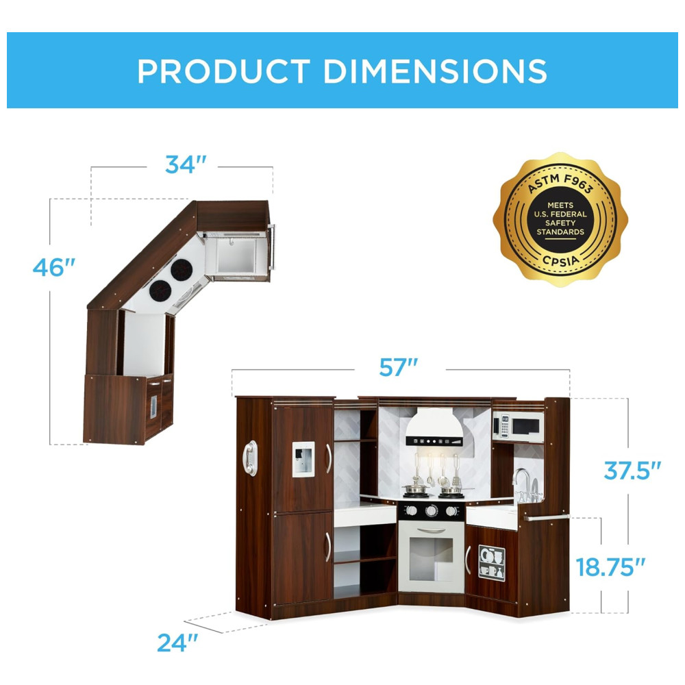 Cozinha Infantil em Madeira interativa com Luzes Sons Máquina de Fazer Gelo Exaustor Forno e Micro-ondas Best Choice Products Marrom