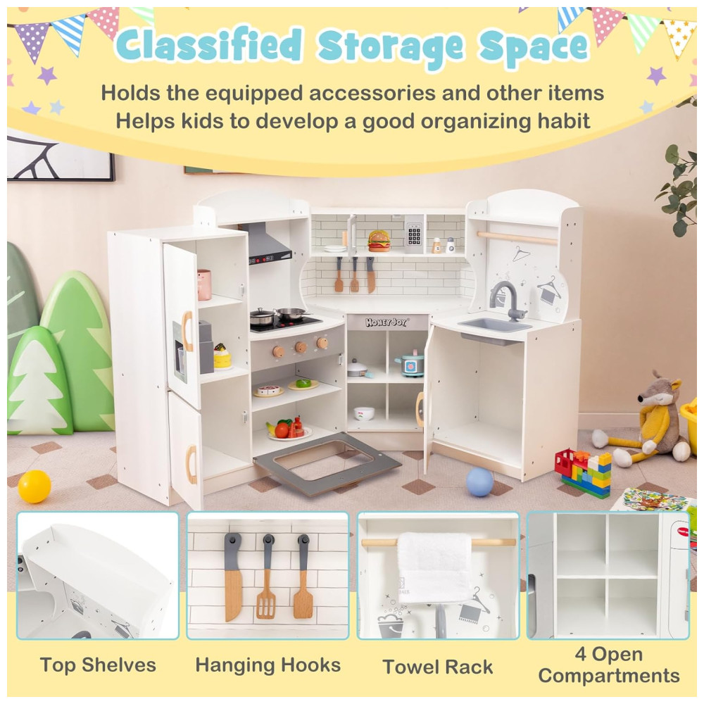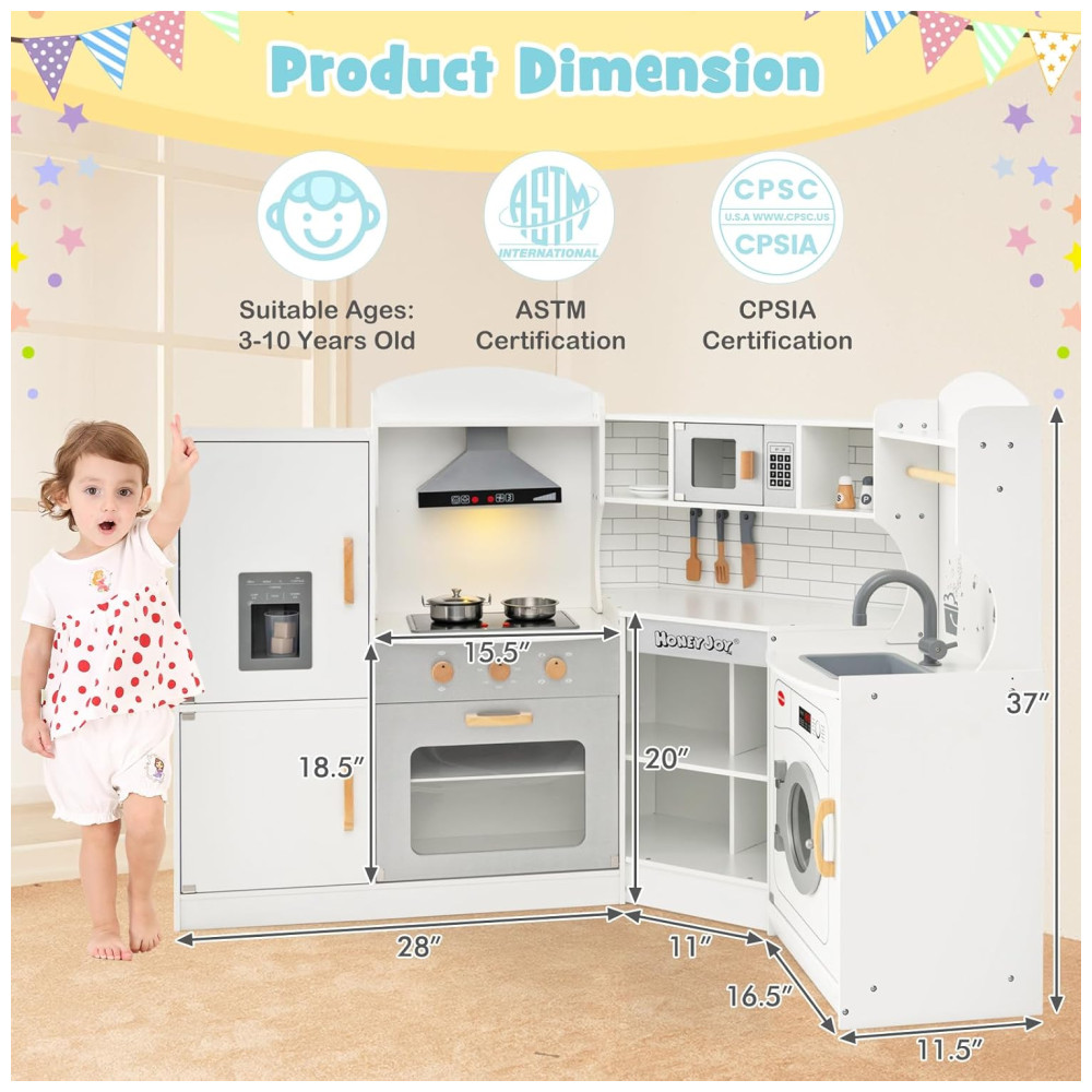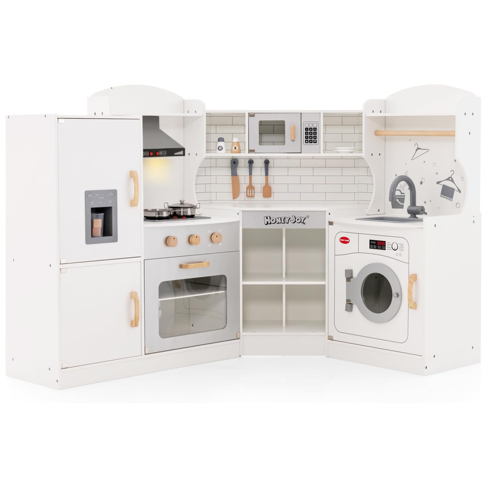 Cozinha Infantil Modular em Madeira com Luzes e Sons Realistas para Crianças Acima de 3 Anos HONEY JOY Branca
