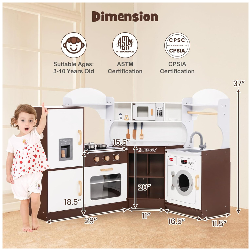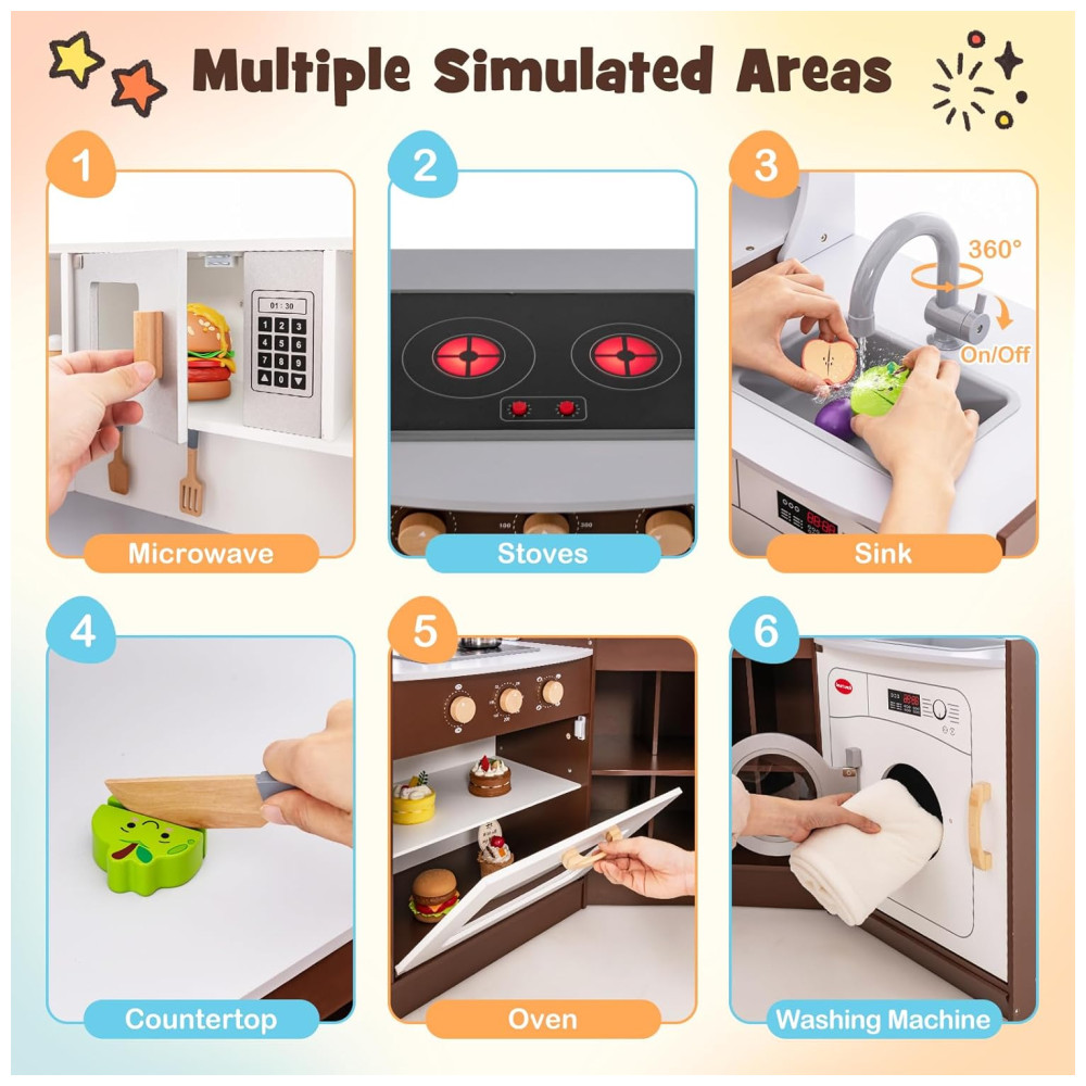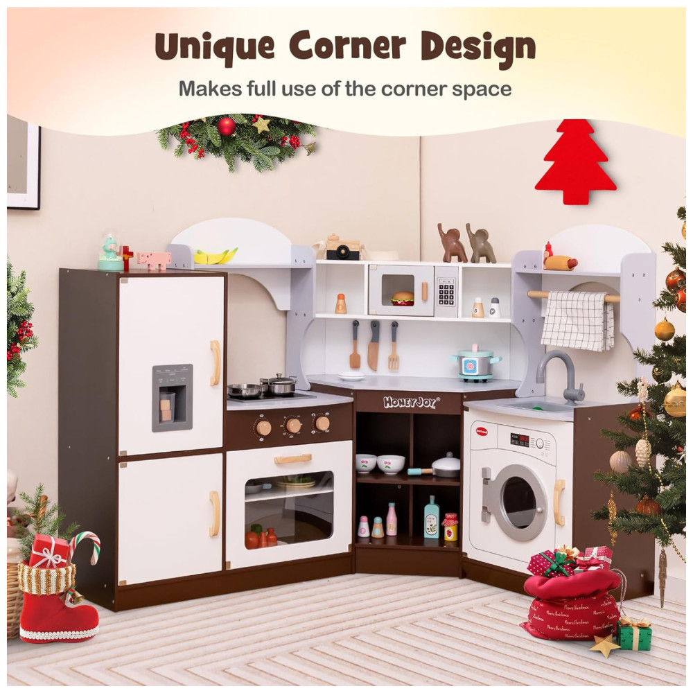 Cozinha Infantil Modular em Madeira com Luzes e Sons Realistas para Crianças Acima de 3 Anos HONEY JOY Marrom
