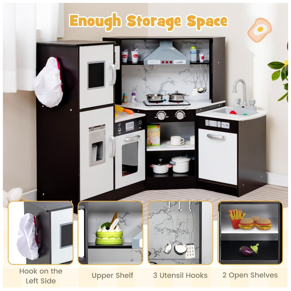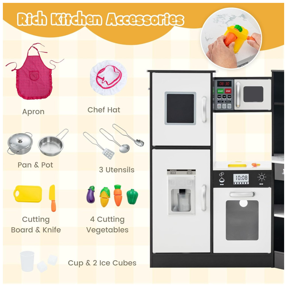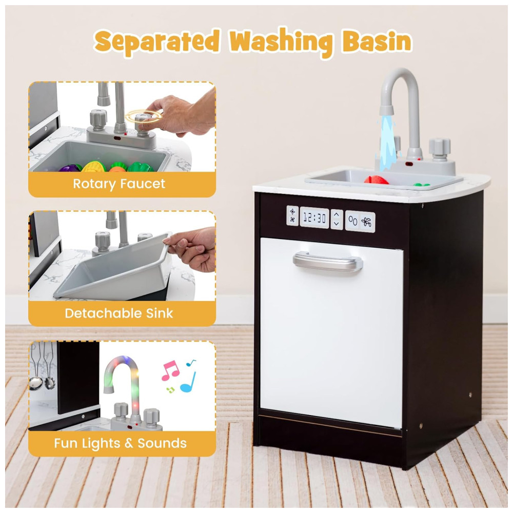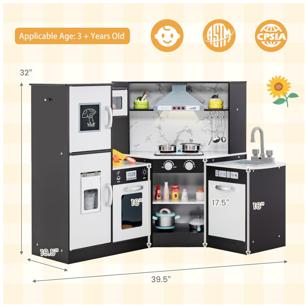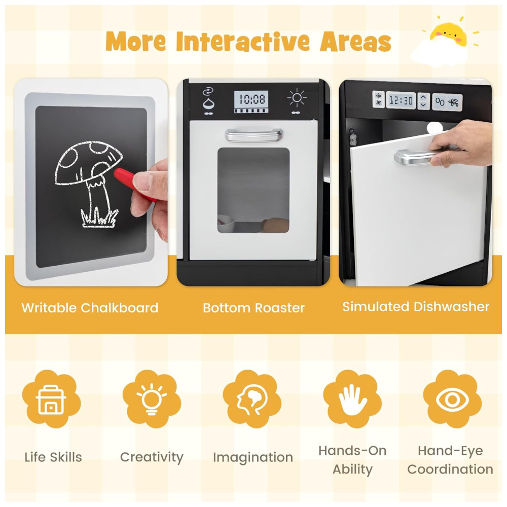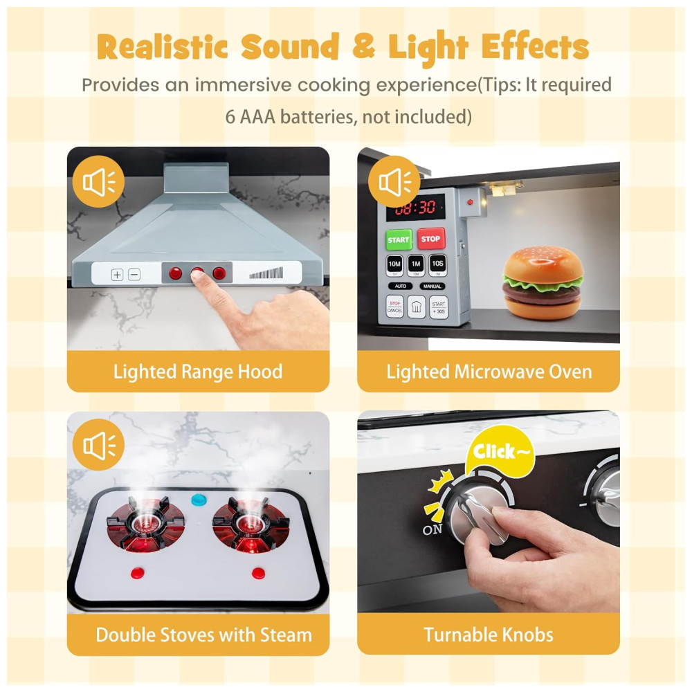 Cozinha Infantil Modular em Madeira com Luzes e Sons Realistas para Crianças Acima de 3 Anos HONEY JOY Preta