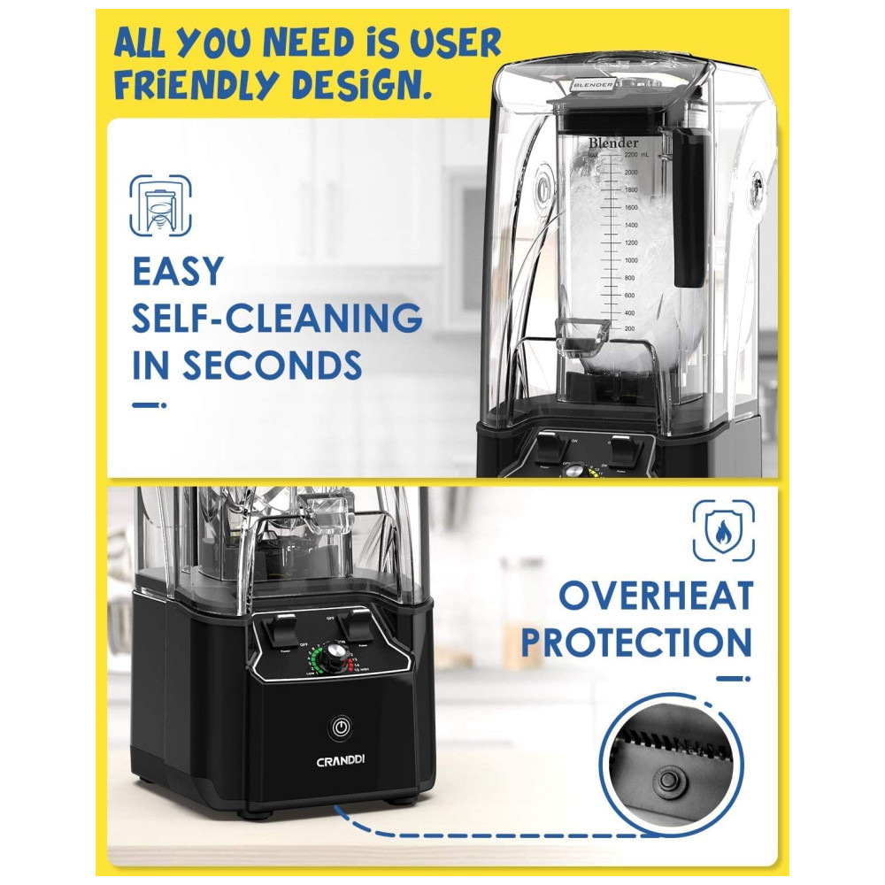 CRANDDI K90 B Liquidificador Profissional Silenciosa 2.2L 15 Velocidades 2200W 110V