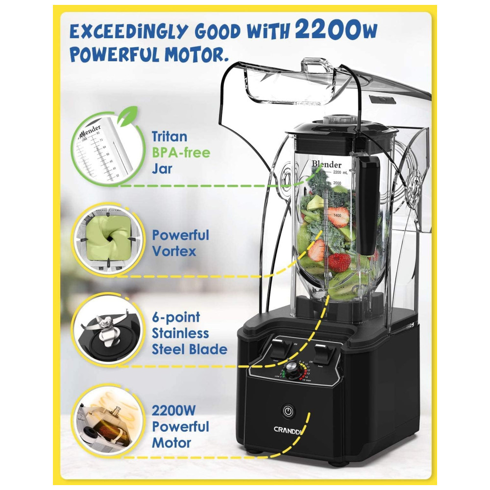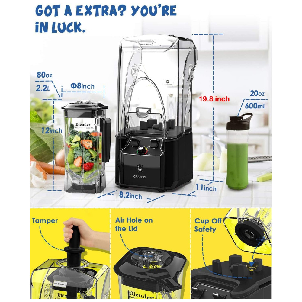 PODE FAZER QUIET SHIELD BLENDER. O CRANDDI Quiet Shield Blender vem com tecnologia de mistura silenciosa e a capa à prova de som reduz drasticamente os níveis de ruído, sem se preocupar com respingos ou vazamentos durante a mistura. Este liquidificador de bancada com capacidade super grande de 80 onças 2.2L, 8 copos BPA Free Tritan jarro para 4 6 pessoas. É perfeito para fazer grandes lotes de cremosos, cremosos, papinhas, batidos e batidos para toda a família ou para uso .