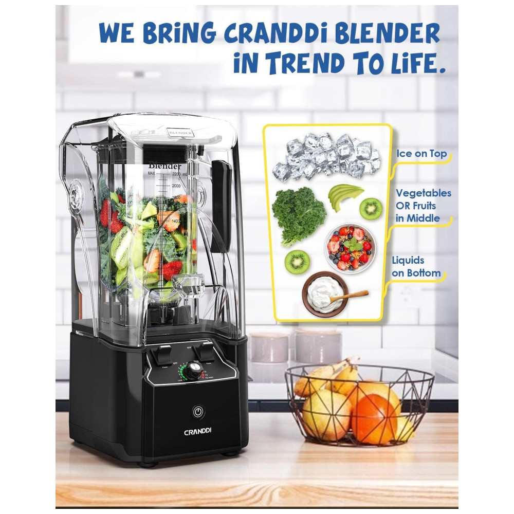 TRAZEMOS A VIDA DO CRANDDI BLENDER NA TENDÊNCIA. Liquidificador profissional da CRANDDI com o mais design de perspectiva Quiet Shield exclusivo que é adequado para consumidores de todas as idades, especialmente para idosos, bebês ou GymRat. Frasco de 80 onças 2,2 litros construído com material sem BPA Tritan. Perfeito para hotéis, restaurantes, spas, cafés, cafeterias, bares, em qualquer lugar que se beneficiaria de um ambiente relaxante e focado no cliente.