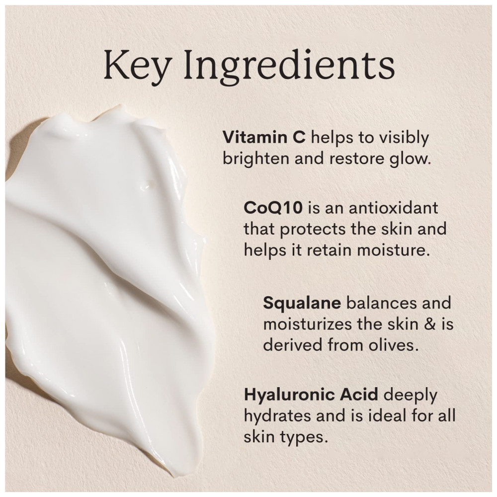 Resultados Visíveis: Formulado com 20 ingredientes nutritivos, este hidratante facial promove a luminosidade da pele e mantém a hidratação. A combinação de esqualano, açaí e chá verde nutre e protege, enquanto peptídeos, CoQ10 e ácido hialurônico ajudam a repor, reparar, suavizar e hidratar a pele.
