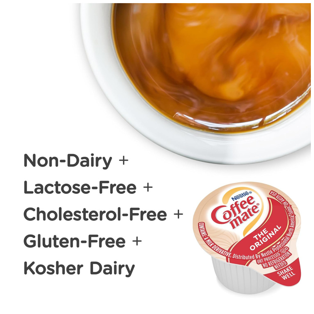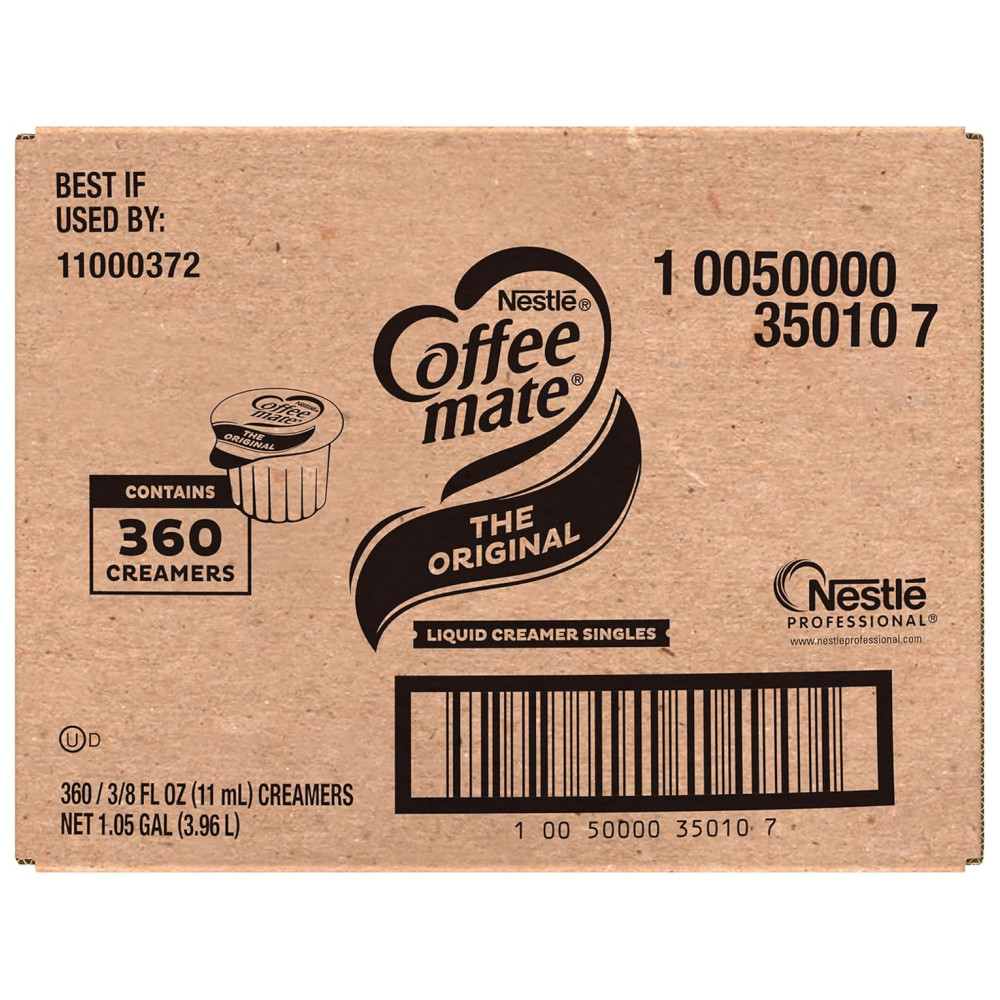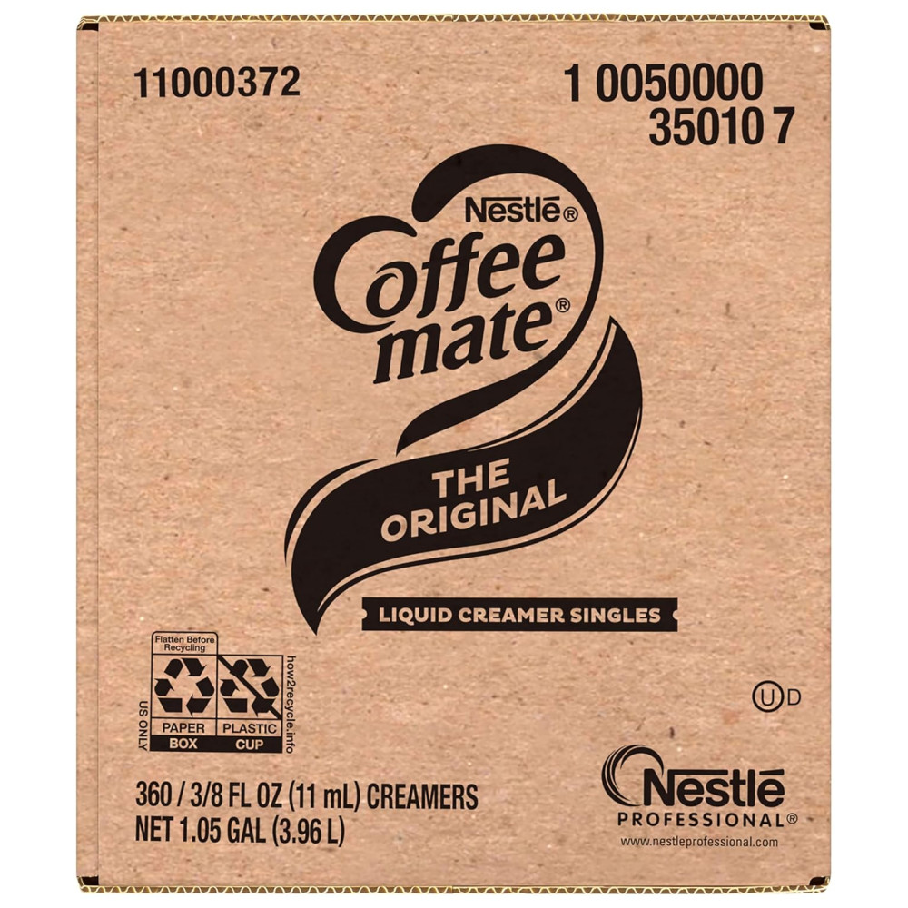 Os singles de creme líquido Nestlé Coffee mate com sabor original são a escolha clássica para complementar sua xícara de café. Cada unidade contém um creme rico e aveludado que adiciona um toque diferenciado à sua bebida favorita. A embalagem contém 360 unidades, oferecendo uma opção deliciosa e conveniente para personalizar seu café. Esses cremes não precisam ser refrigerados e podem manter seu sabor irresistível em temperatura ambiente por até 9 meses. Coffee mate é o creme de café mais popular na América, oferecendo uma variedade de sabores e formatos para atender às suas necessidades. O creme líquido Coffee mate é fácil de usar, basta agitar, abrir e despejar. Além disso, é não lácteo, sem lactose, sem colesterol, sem glúten e kosher. Ideal para uso em locais de trabalho, salas de descanso ou cozinhas, encante seus funcionários, clientes e convidados oferecendo o creme líquido Coffee mate.