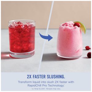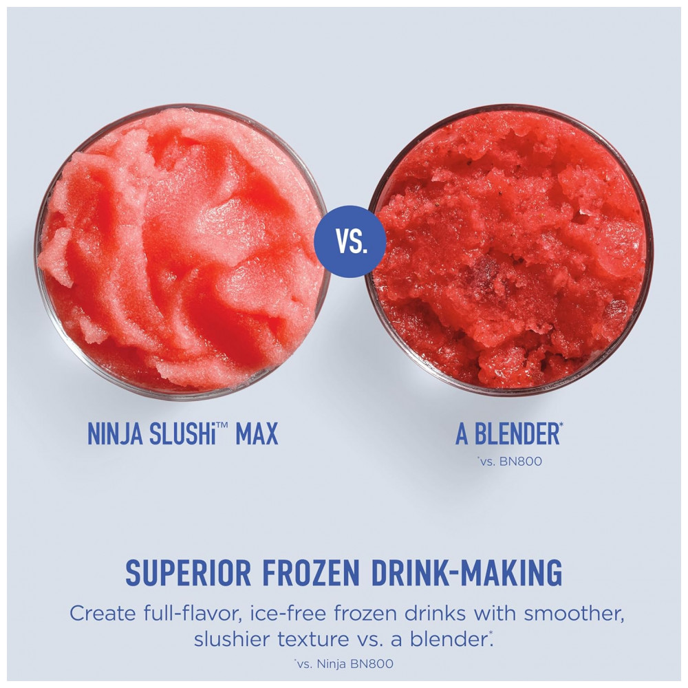 O criador de bebidas geladas Ninja SLUSHi Max FS605 é um equipamento de bancada projetado para preparar bebidas tipo slush em grande volume, com controle automático de textura e resfriamento contínuo. A tecnologia RapidChill Pro circula o líquido em torno do sistema de refrigeração enquanto o agitador mantém a mistura em movimento, formando cristais de gelo finos de maneira uniforme, sem necessidade de adicionar gelo em cubos.