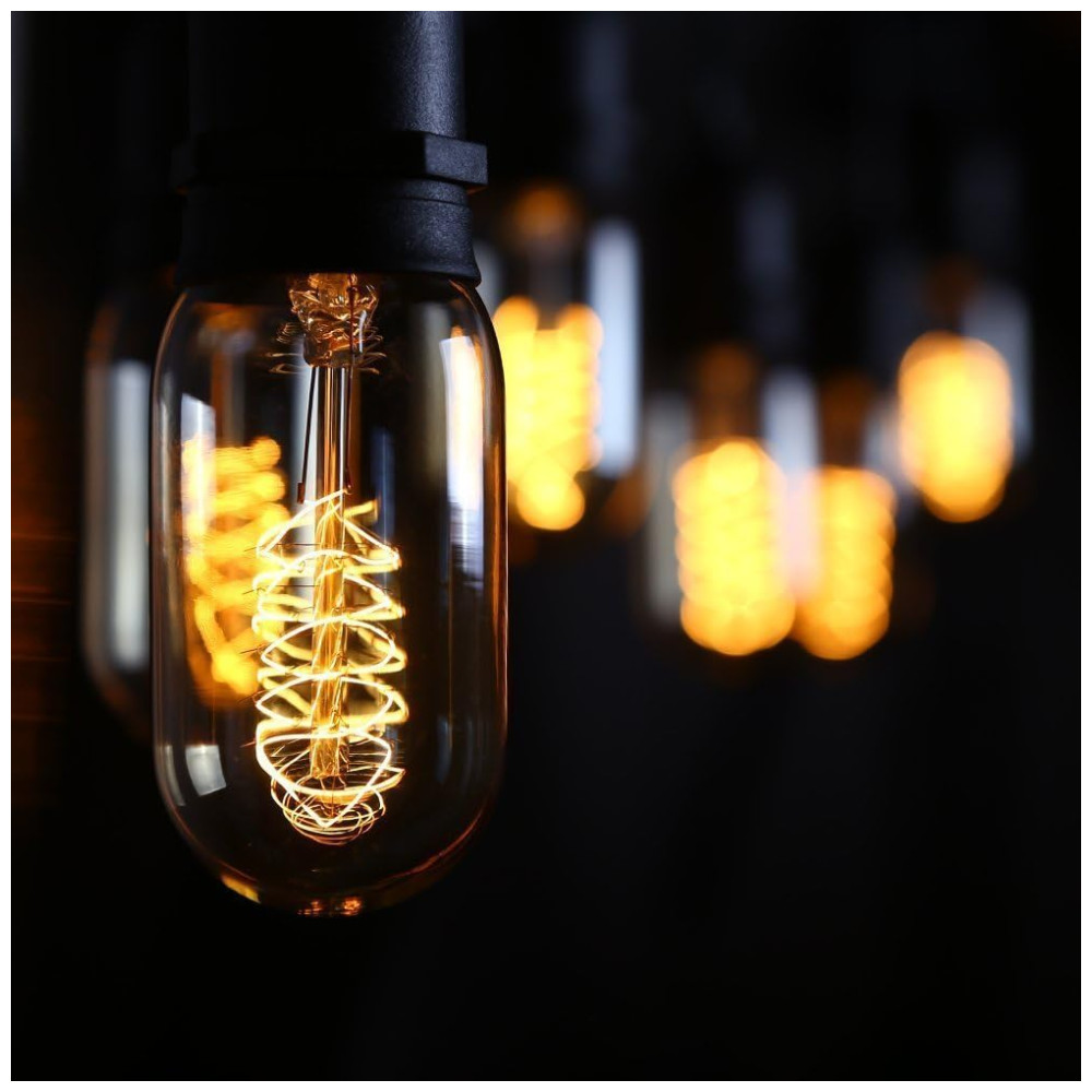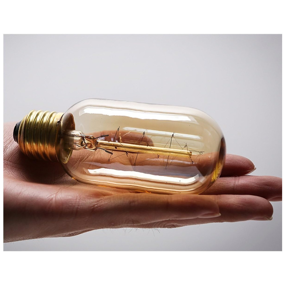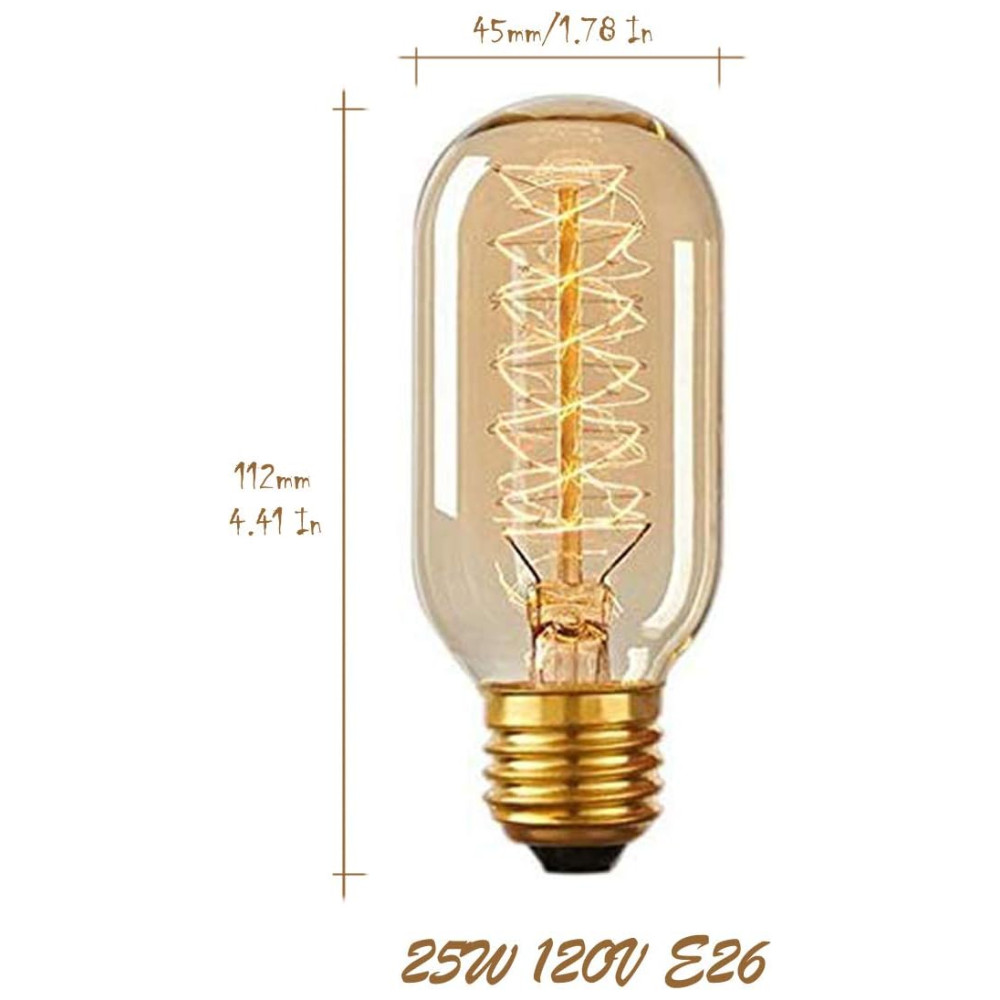 MATERIAL DE QUALIDADE Conjunto de 4 lâmpadas Edison estilo antigo T45 25w, que é feito de vidro transparente âmbar de alta qualidade e base de latão. O vidro T45 com design de filamento Estilo Tubular faz com que pareça adorável e único.
