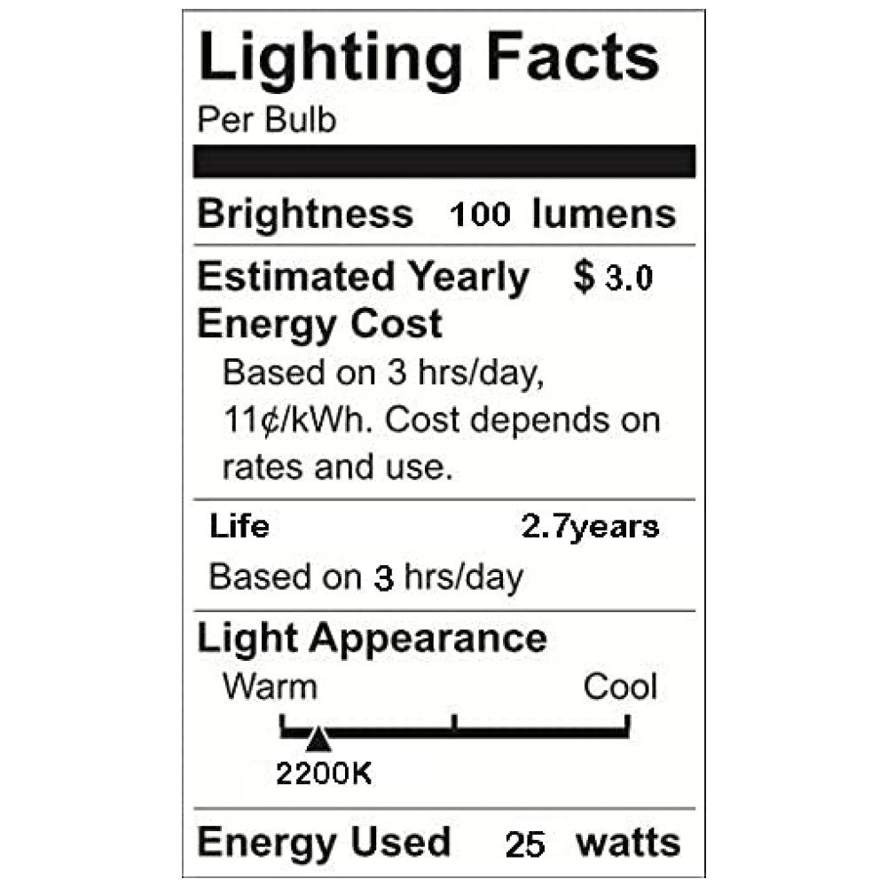 Especificação Potência 25W, Voltagem 110 130v Certificado CERoHS Comprimento total da lâmpada é 112mm 4.4in, Diâmetro é 45mm 1.78in, Encaixe E26, E27, Vidro de cor âmbar. facilmente sem abajures ou outros acessórios de ocultação, convenientes para sua vida diária.