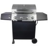 CARACTERÍSTICAS INCLUÍDAS A churrasqueira utiliza uma bandeja coletora para coletar a graxa e os pingos para facilitar a limpeza. O regulador de gás monitora o fluxo de gás do tanque de propano para a churrasqueira enquanto cozinha. propano não incluído