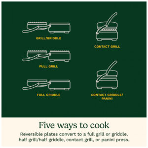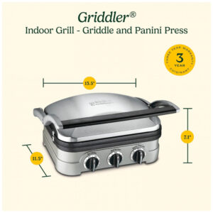 Com a conveniência de cocção 5 em 1, a Churrasqueira Indoor Griddler da Cuisinart pode lidar com tudo, desde panquecas e salsichas até queijos grelhados, bifes, hambúrgueres e paninis. Uma tampa flutuante e um conjunto de placas antiaderentes reversíveis transformam o Griddler em uma churrasqueira de contato, prensa de panini, churrasqueira completa, chapa completa ou metade churrasqueira metade chapa. Os controles de temperatura dupla permitem ajustar de ‘aquecer’ a ‘selar’ no modo chapa/prensa de panini, e de 93ºC a 218ºC no modo chapa, garantindo que tudo seja perfeitamente cozido todas as vezes nas placas antiaderentes para refeições práticas. A limpeza é fácil, graças às placas removíveis laváveis na lava-louças, bandeja de gotejamento removível e uma ferramenta de limpeza. A Churrasqueira Indoor Griddler PFAS-free da Cuisinart tem tudo o que você precisa para refeições deliciosas, fáceis e versáteis.