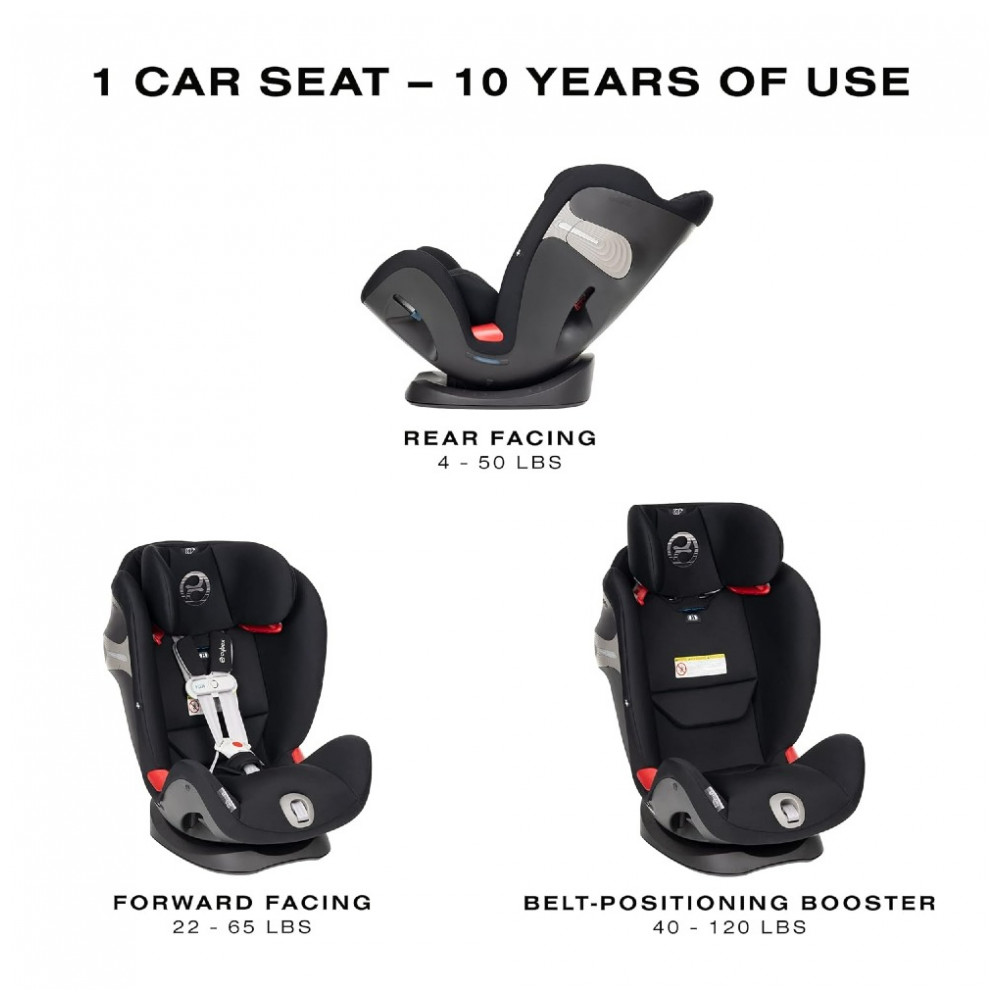 Assento de carro de 10 anos as transições sem costura entre os modos oferecem até 10 anos de uso do seu Eternis S. Uma inclinação no assento ajuda a fornecer posicionamento ergonômico correto e espaço extra para as pernas que permite que seu filho ande de costas por mais tempo.
