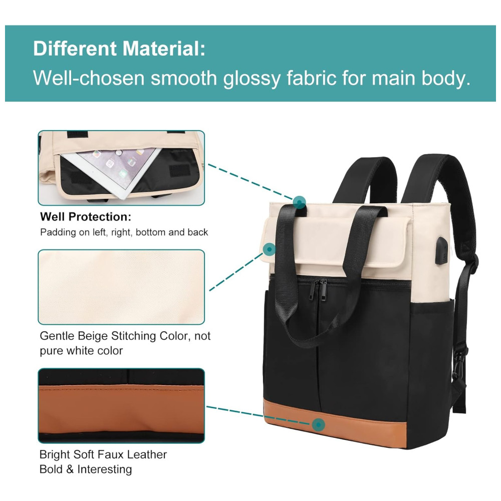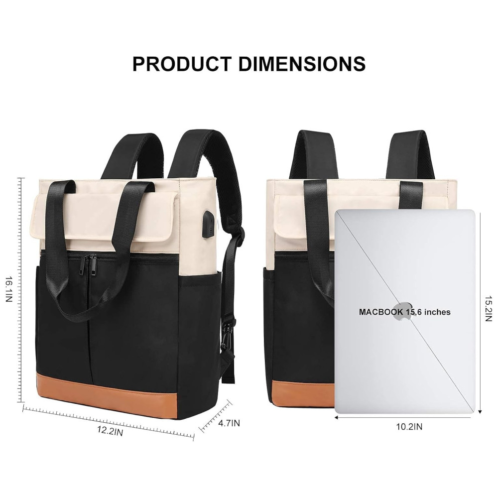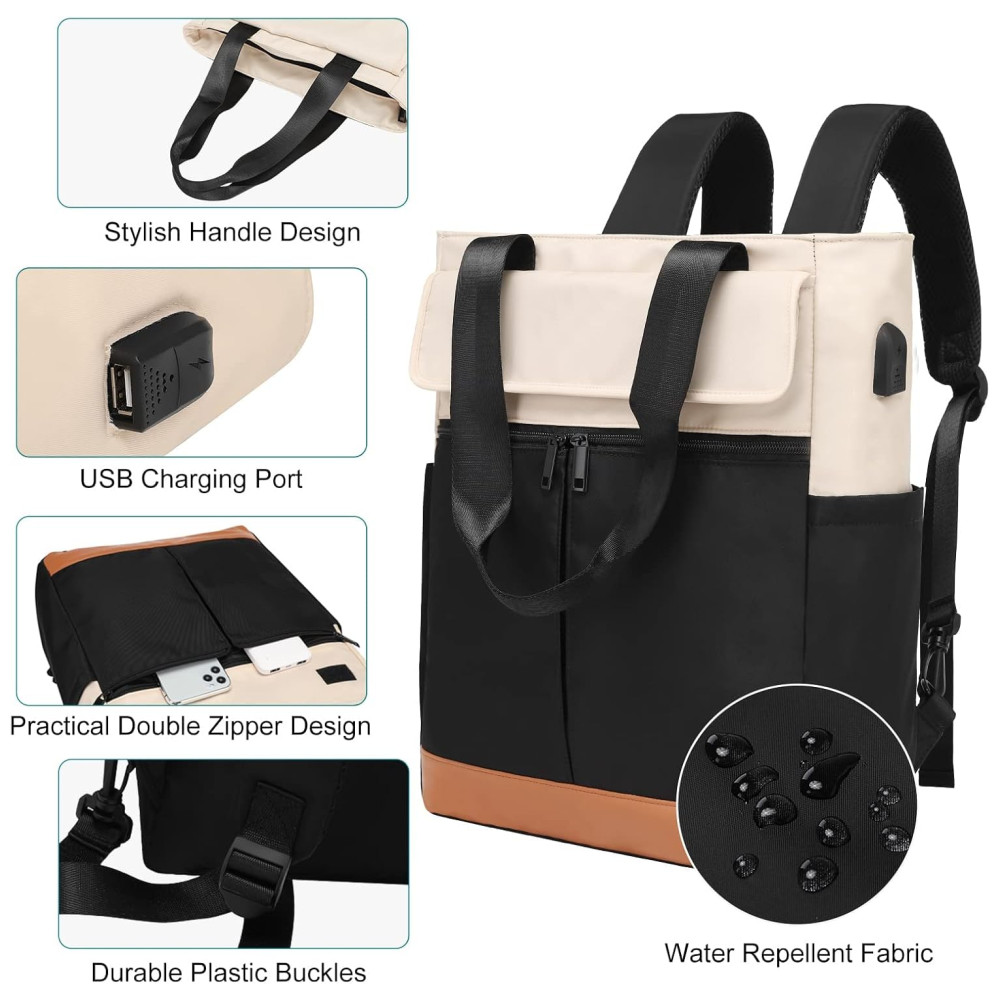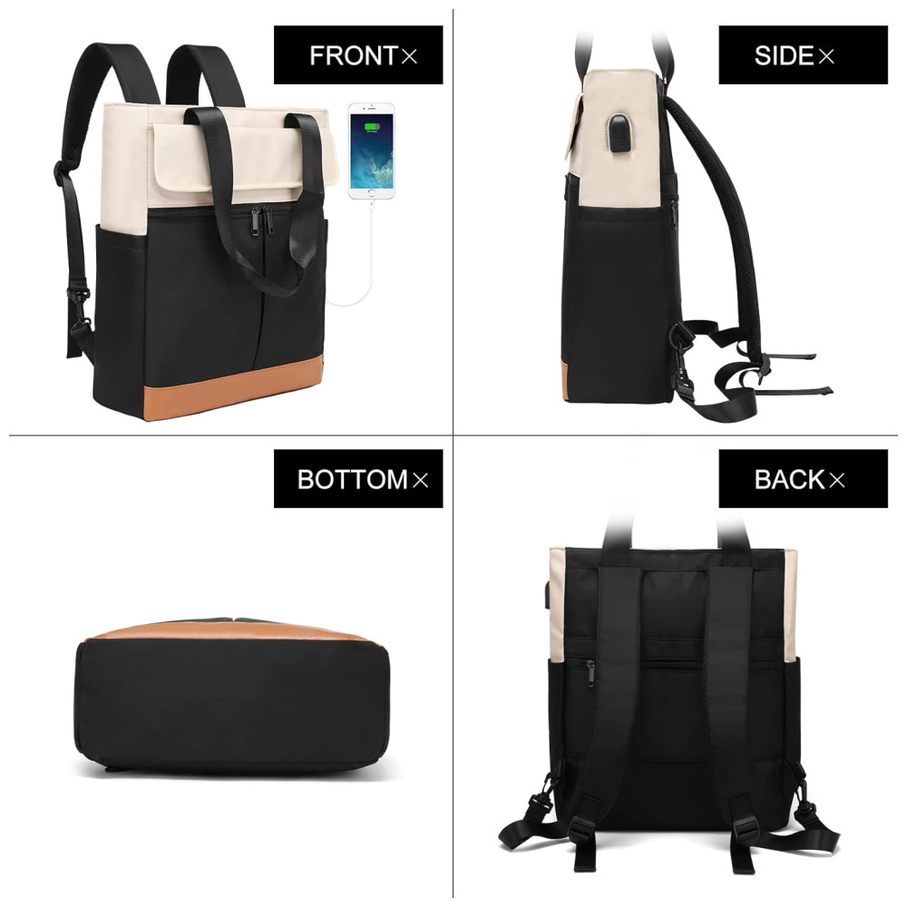 Cyurey Mochila Feminina para Laptop conversível para Bolsa de Ombro com Porta USB CYUREAY Preto