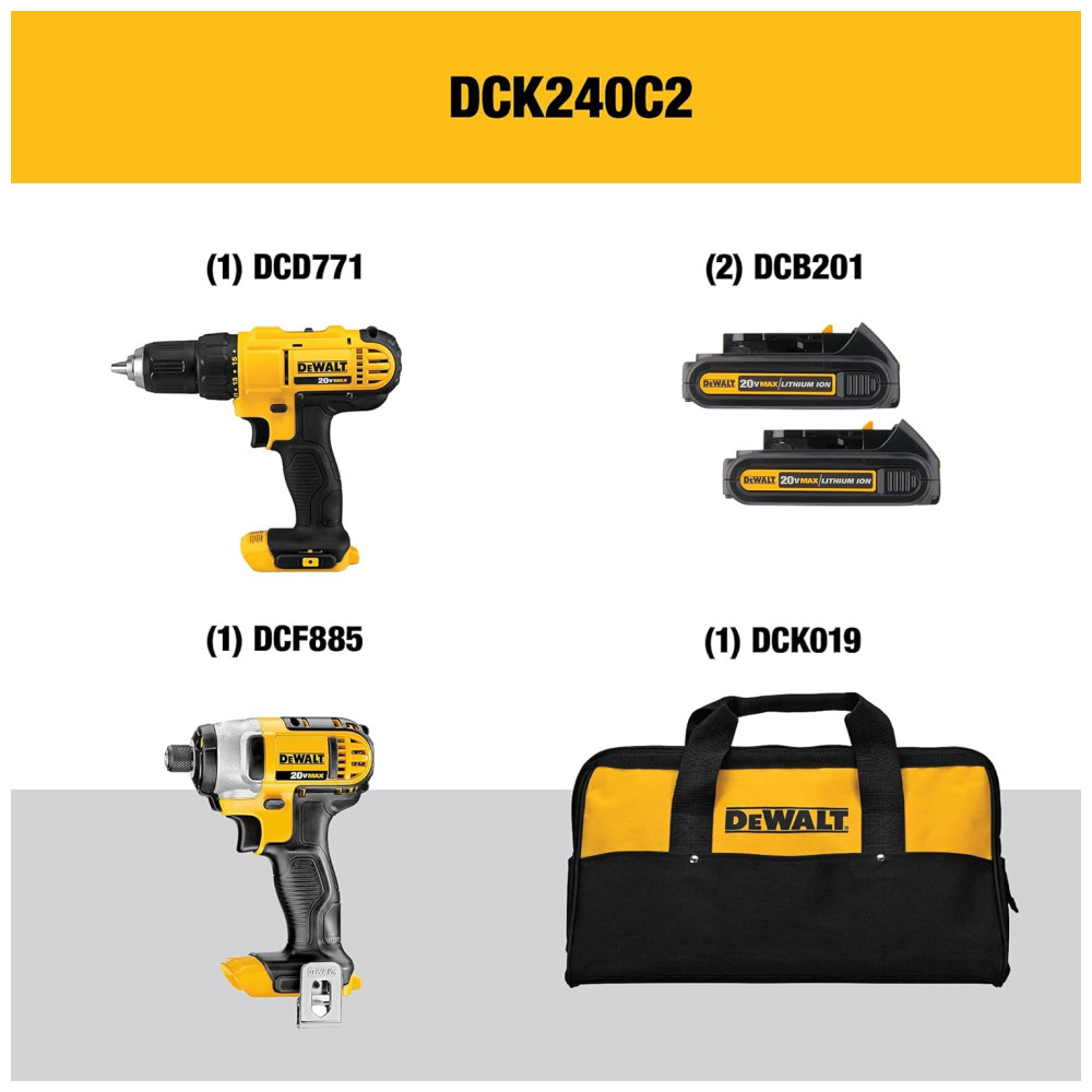 DCK240C2 DW1361 Kit Ferramentas com 21 Peças DEWALT Amarelo
