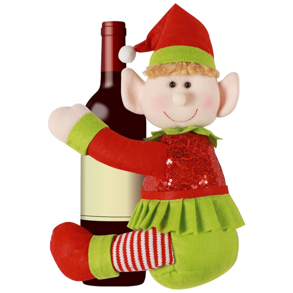 Decoração de Natal com Elf Tree Topper Engraçado e Único Enfeite de Natal de Elf de Pelúcia para Árvore de Natal Garrafa de Vinho e Cortina Vermelh
