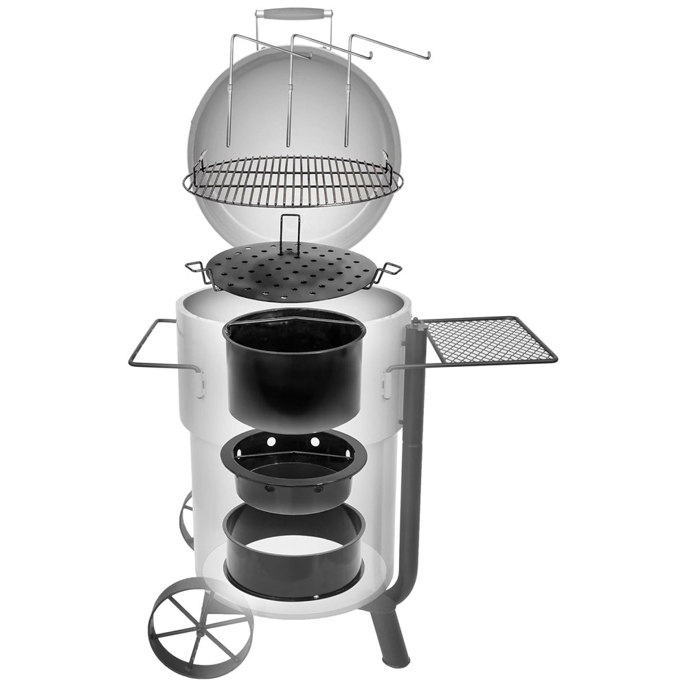 Inclui grelha de cozimento, 3 cabides de carne, 9 ganchos de carne e um difusor de calor para máxima flexibilidade para defumar do seu jeito